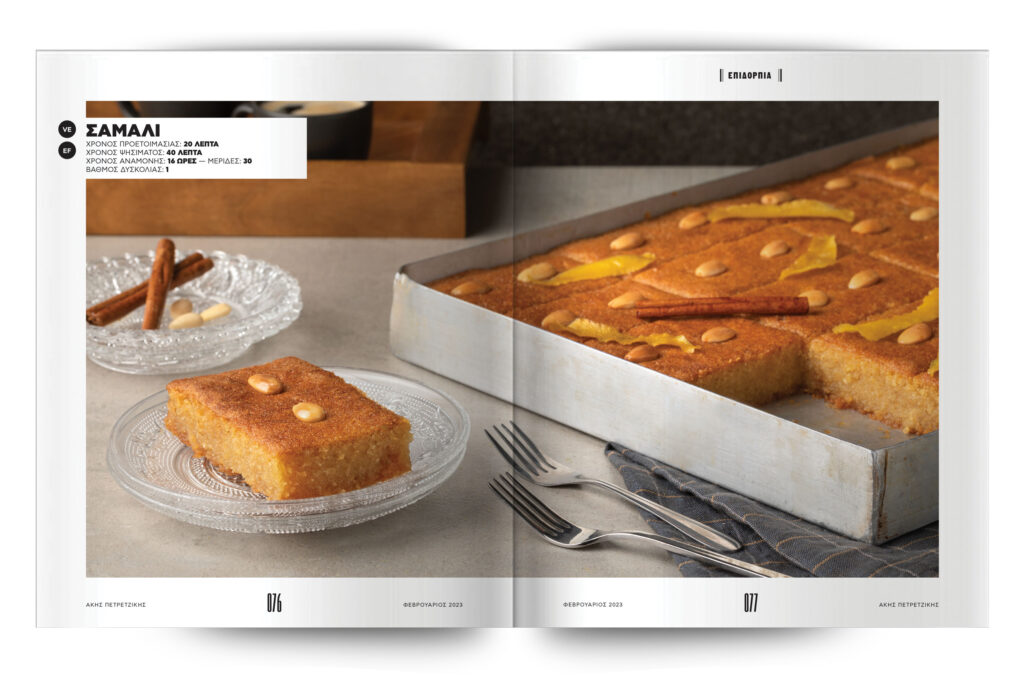 Σάμαλι, Τούρτα αμυγδάλου, Τιραμισού με λευκή σοκολάτα, Λουκουμάδες με γάλα, Σαραγλί με φιστίκια Αιγίνης και ινδοκάρυδο
