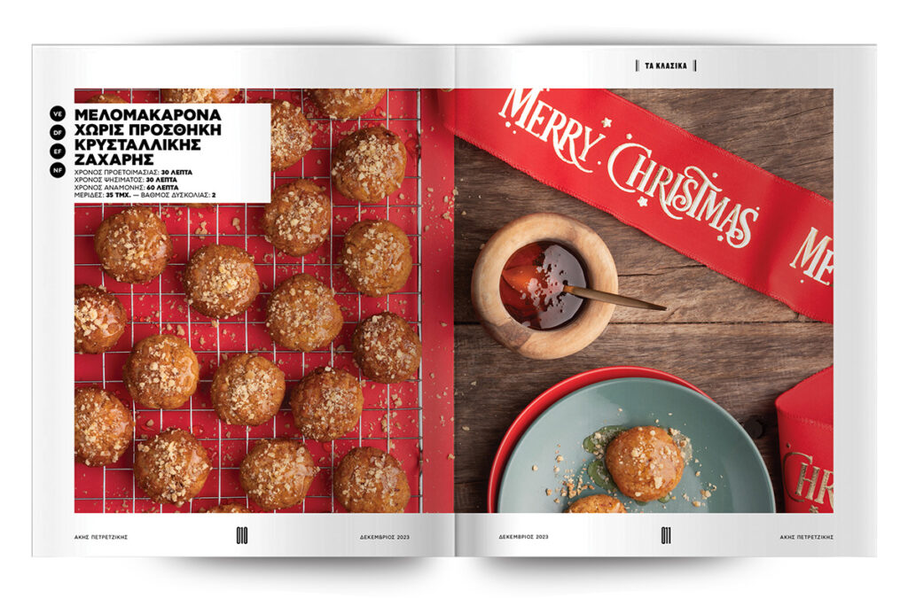 Ετοιμάζουμε τα κλασικά αγαπημένα γλυκά της εποχής και τα επιστρατεύουμε για να στολίσουμε το σπίτι μας, αλλά και για να τα δωρίσουμε σε εκείνους που αγαπάμε: Από μελομακάρονα, gingerbread cookies, κουραμπιέδες με beurre noisette, φοινίκια μέχρι μελομακάρονα χωρίς προσθήκη κρυσταλλικής ζάχαρης – και αυτά είναι μόνο η αρχή!