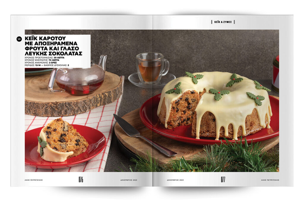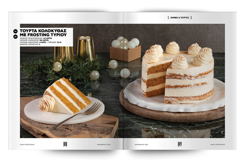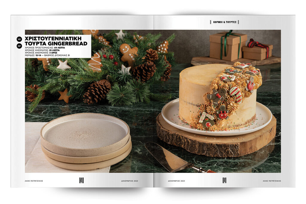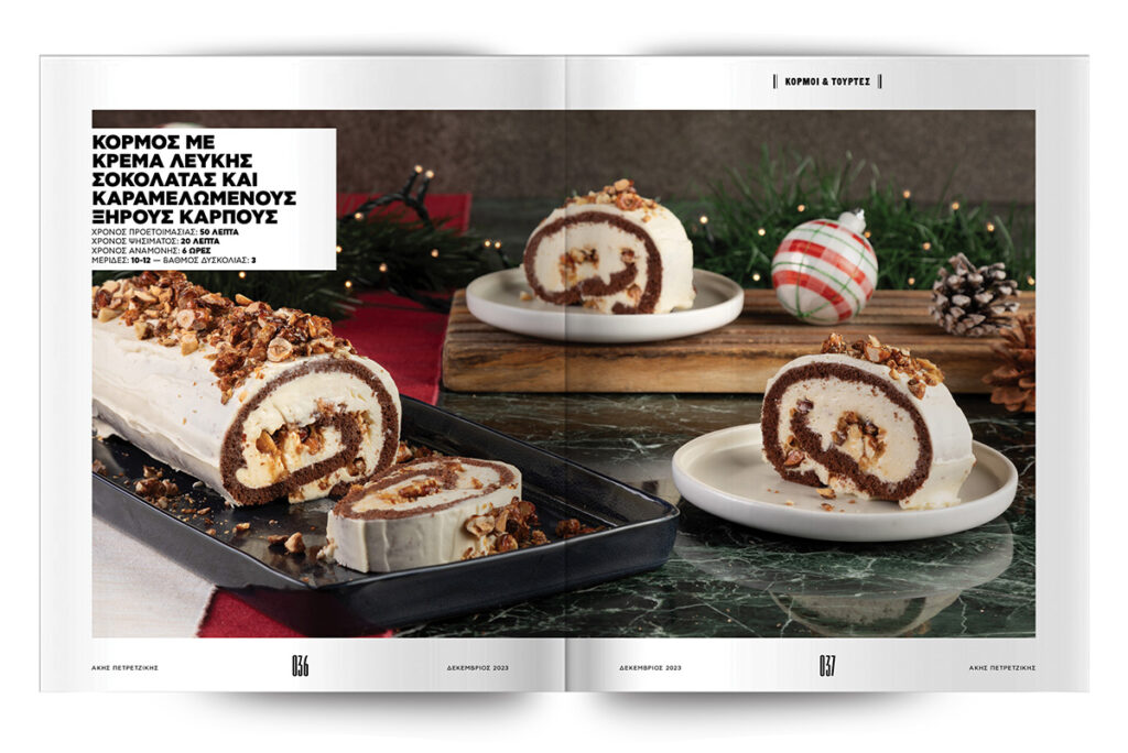Συνθέτουμε τούρτες-υπερπαραγωγή και υπέροχους, γιορτινούς κορμούς. Που θα θέλετε να φτιάχνετε όχι μόνο μέσα στις γιορτές, αλλά κάθε ημέρα του χρόνου: κορμός μελομακάρονο και κορμός με κρέμα λευκής σοκολάτας και καραμελωμένους ξηρούς καρπούς. Χριστουγεννιάτικη τούρτα gingerbread, τούρτα eggnog και μια ανεπανάληπτη τούρτα κολοκύθας με frosting τυριού. Το καλύτερο όλων; Εκτός από σούπερ απολαυστικά, τα συγκεκριμένα γλυκά είναι και απίστευτα όμορφα – τόσο όμορφα που θα λυπάστε να τα κόψετε…