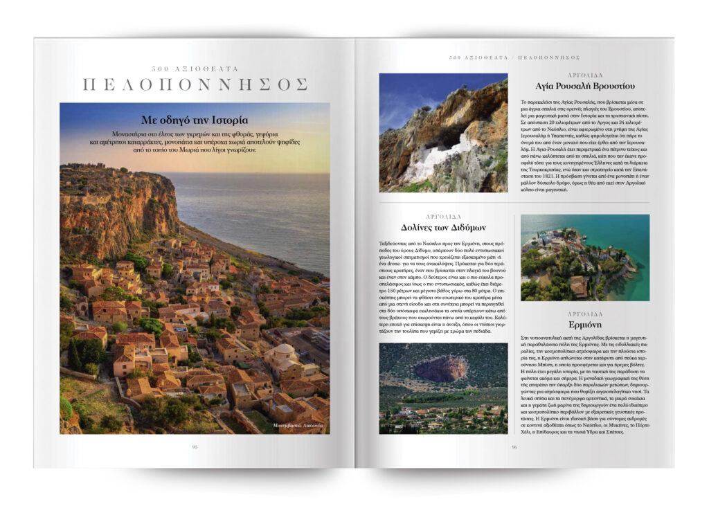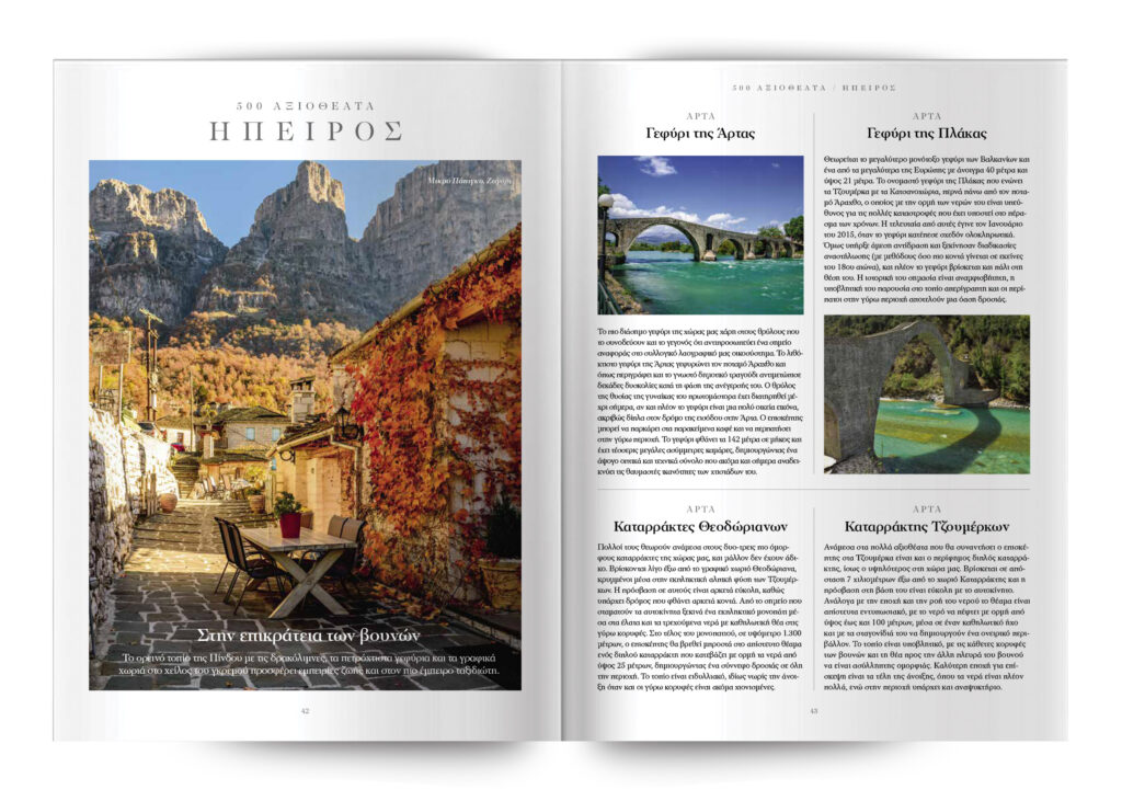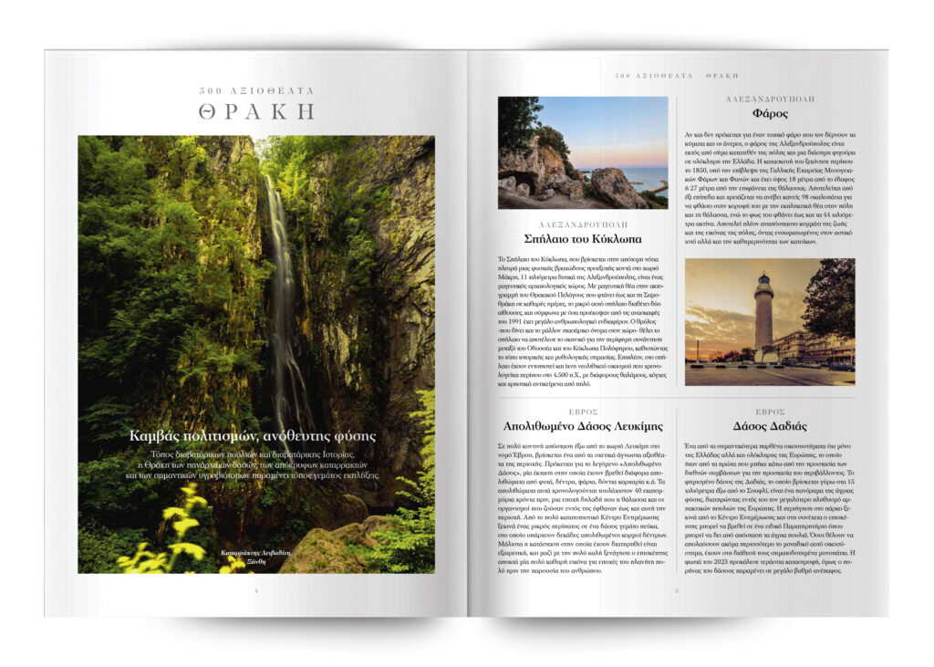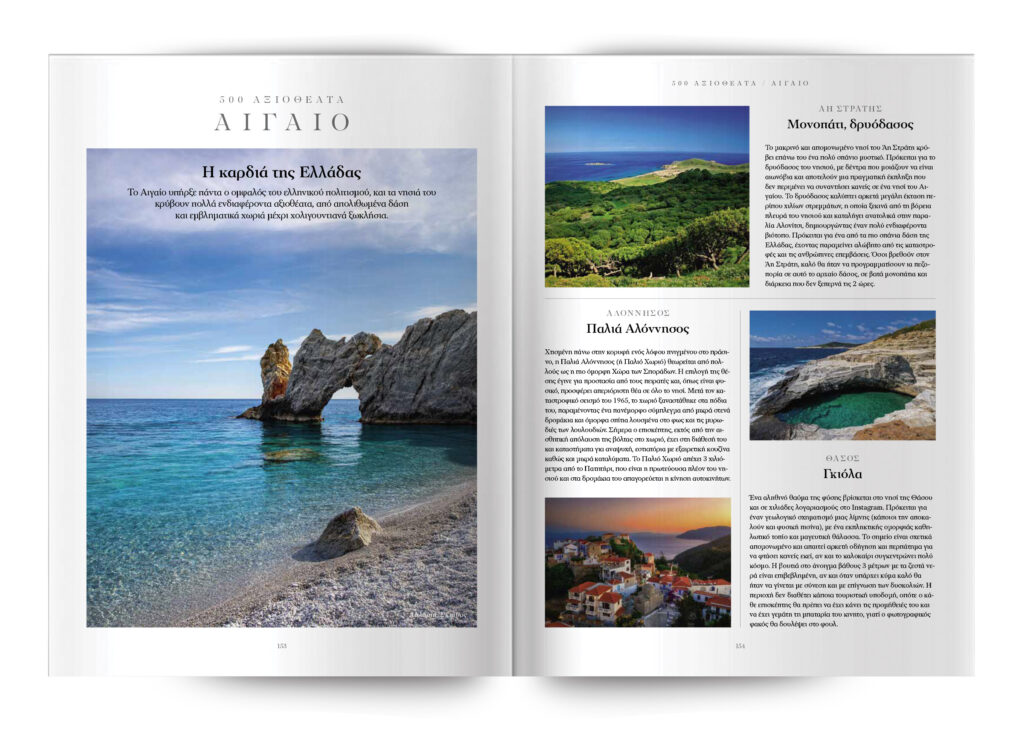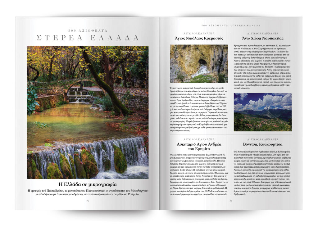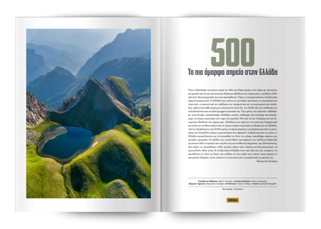 Οι σελίδες αυτής της ειδικής έκδοσης προσφέρουν την απόλυτη bucket list για όποιον θέλει να φθάσει στον πυρήνα της πιο ανόθευτης έκφρασης της ελληνικότητας. Και εκείνο το ακατόρθωτο «500» μοιάζει πλέον τόσο εύκολο που θα μπορούσαν να προστεθούν άλλα τόσα. Η ανεξάντλητη Ελλάδα είναι εκεί έξω και σας περιμένει να προσθέσετε και εσείς τις δικές σας σελίδες σε έναν μύθο που αιώνες τώρα μπορεί να εφευρίσκει διαρκώς νέους τρόπους να ανανεώνει και να εμπλουτίζει την μαγεία του.