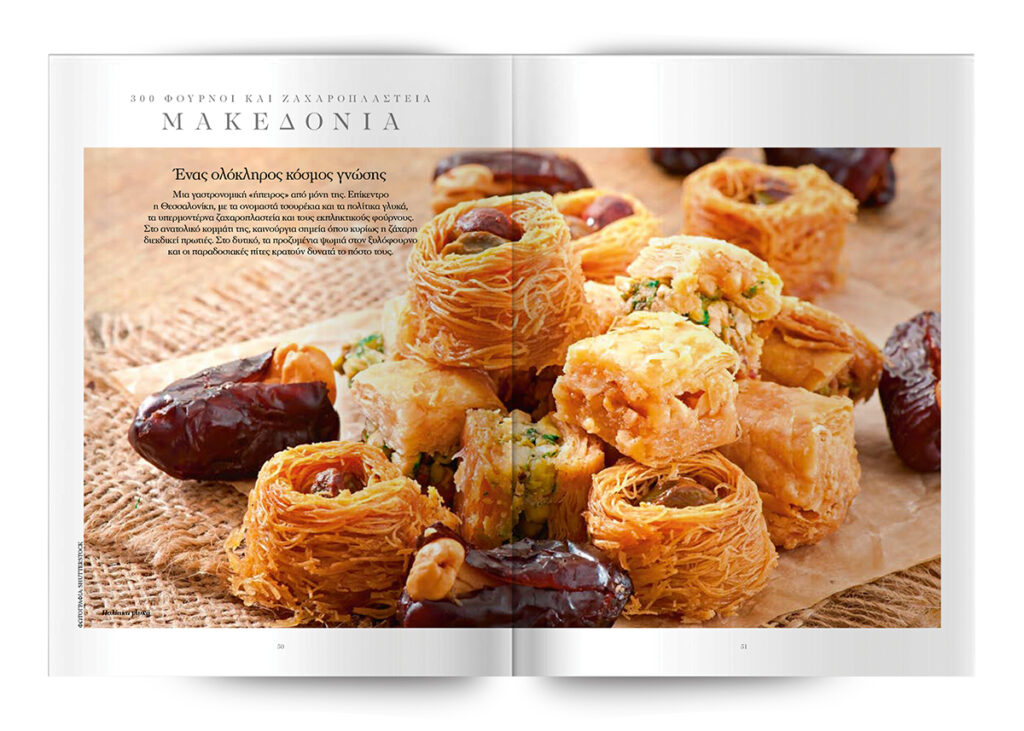 Μια γαστρονομική γη η Μακεδονία, με επίκεντρο τη Θεσσαλονίκη με τα ονομαστά τσουρέκια και τα πολίτικα γλυκά, τα υπερμοντέρνα ζαχαροπλαστεία και τους εκπληκτικούς φούρνους. Στο ανατολικό κομμάτι της Μακεδονίας, καινούργια σημεία όπου κυρίως η ζάχαρη διεκδικεί πρωτιές. Στο δυτικό, τα προζυμένια ψωμιά στον ξυλόφουρνο και οι παραδοσιακές πίτες κρατούν δυνατά το πόστο τους.