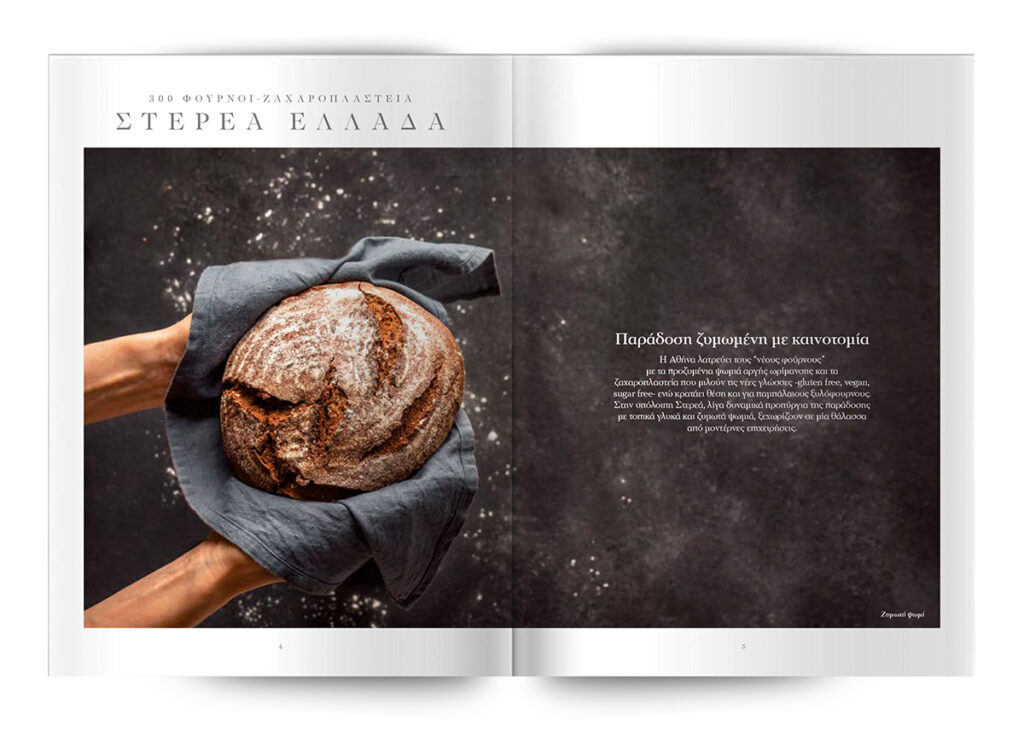 Το προζυμένιο ψωμί κυριαρχεί στη γαστρονομική σκηνή της Αθήνας και σε ένα βαθμό και της Θεσσαλονίκης με απόλυτο πρωταγωνιστή τους επονομαζόμενους «νέους φούρνους» που βγάζουν προζυμένιο ψωμί αργής ωρίμανσης. Τα ζαχαροπλαστεία με πολίτικα γλυκά και σιροπιαστά του ταψιού είναι η σταθερά της απόλαυσης σε ολόκληρη τη χώρα. Νέα δυναμική τάση, τα ζαχαροπλαστεία με γλυκά για διατροφικές ευαισθησίες, gluten free, vegan, vegetarian, lactose free, sugar free, raw (ωμοφαγικά γλυκά).