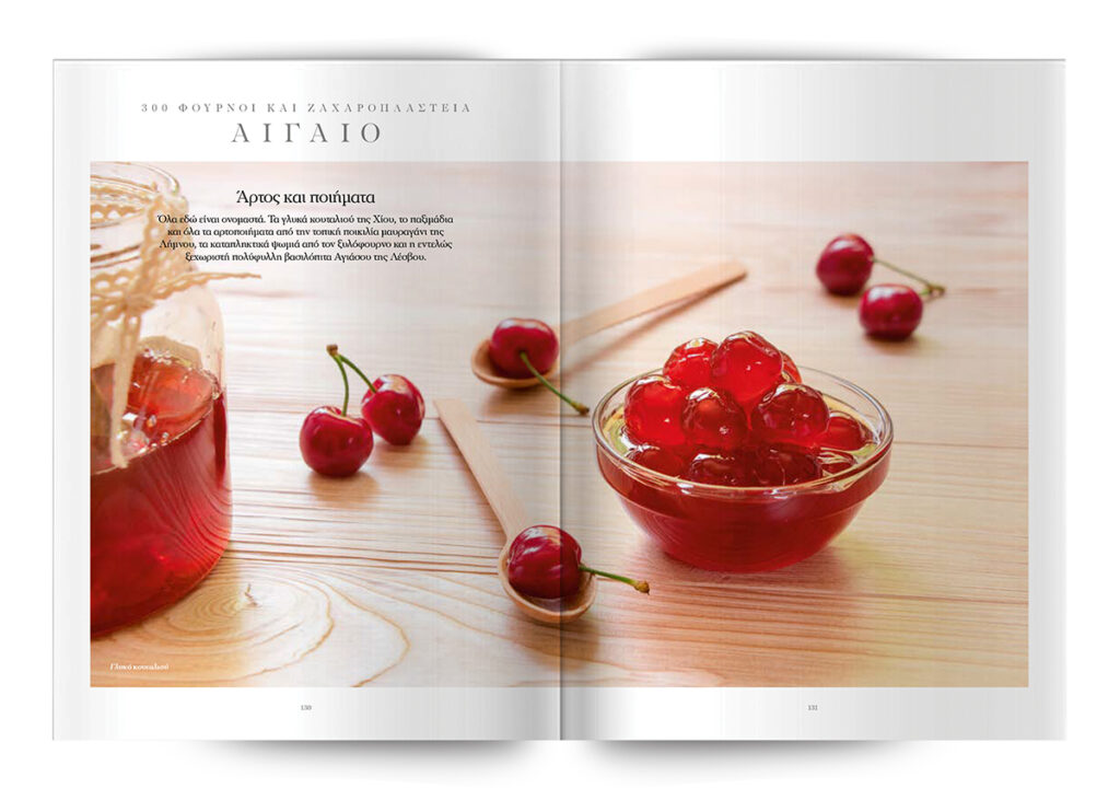 Όλα εδώ είναι ονομαστά. Τα γλυκά κουταλιού της Χίου, το παξιμάδια και όλα τα αρτοποιήματα από την τοπική ποικιλία μαυραγάνι της Λήμνου, τα καταπληκτικά ψωμιά από τον ξυλόφουρνο και η εντελώς ξεχωριστή πολύφυλλη βασιλόπιτα Αγιάσου της Λέσβου.