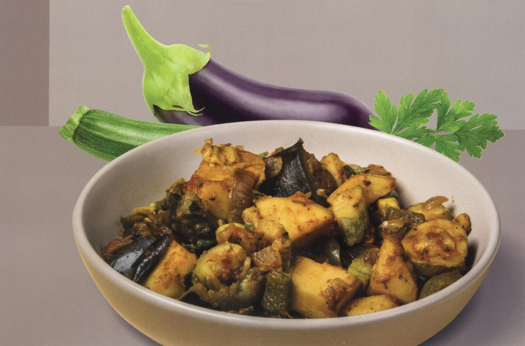 Προσθέτετε τις πατάτες, τις πιπεριές, τα κολοκύθια και τη μελιτζάνα και ανακατεύετε.