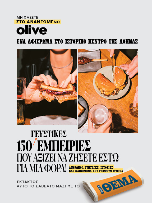 Στο νέο τεύχος του Olive που κυκλοφορεί εκτάκτως το Σάββατο 25 Μαρτίου μαζί με το Πρώτο Θέμα, ένα μεγάλο Αφιέρωμα στο Ιστορικό Κέντρο της Αθήνας!