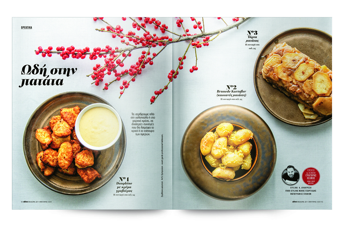 Dauphine µε κρέµα γραβιέρας, Brunede Kartofler (καστανές πατάτες), Τάρτα πατάτας.