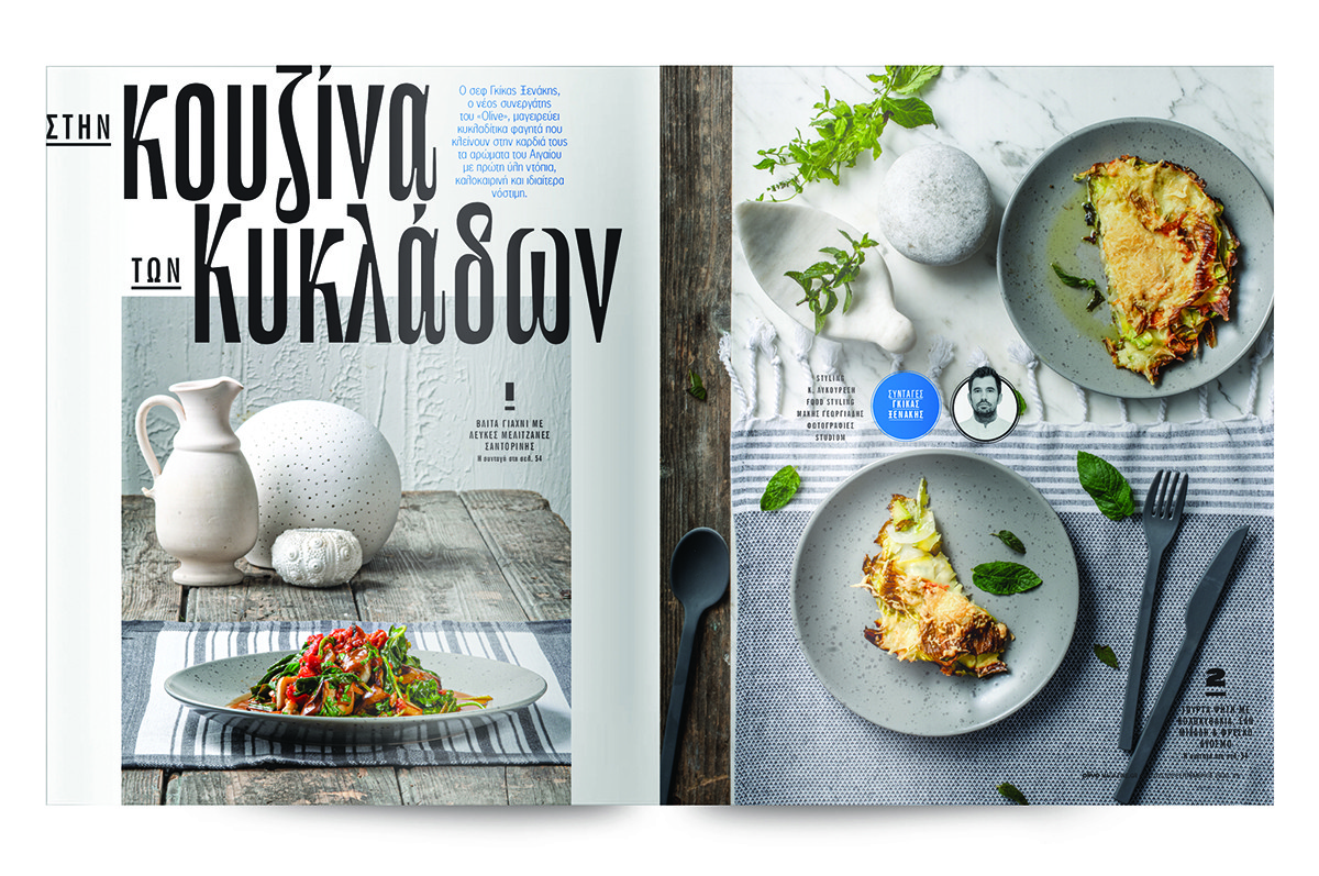Ο σεφ Γκίκας Ξενάκης, ο νέος συνεργάτης του Olive, μαγειρεύει φαγητά κυκλαδίτικα, που κλείνουν στην καρδιά τους τα αρώματα του Αιγαίου με προϊόντα ντόπια, καλοκαιρινά και νόστιμα. Απολαύστε: Βλίτα γιαχνί µε λευκές µελιτζάνες Σαντορίνης, Τούρτα ψητή µε κολοκυθάκια & τυρί Σαν Μιχάλη, Τηγανητές λιαστές ντοµάτες µε σκορδάτη σάλτσα βασιλικού, Χυλοπίτες σε ζωµό κρεµµυδιού, πάστα µάραθου & τυροβολιά Μυκόνου κ.ά.
