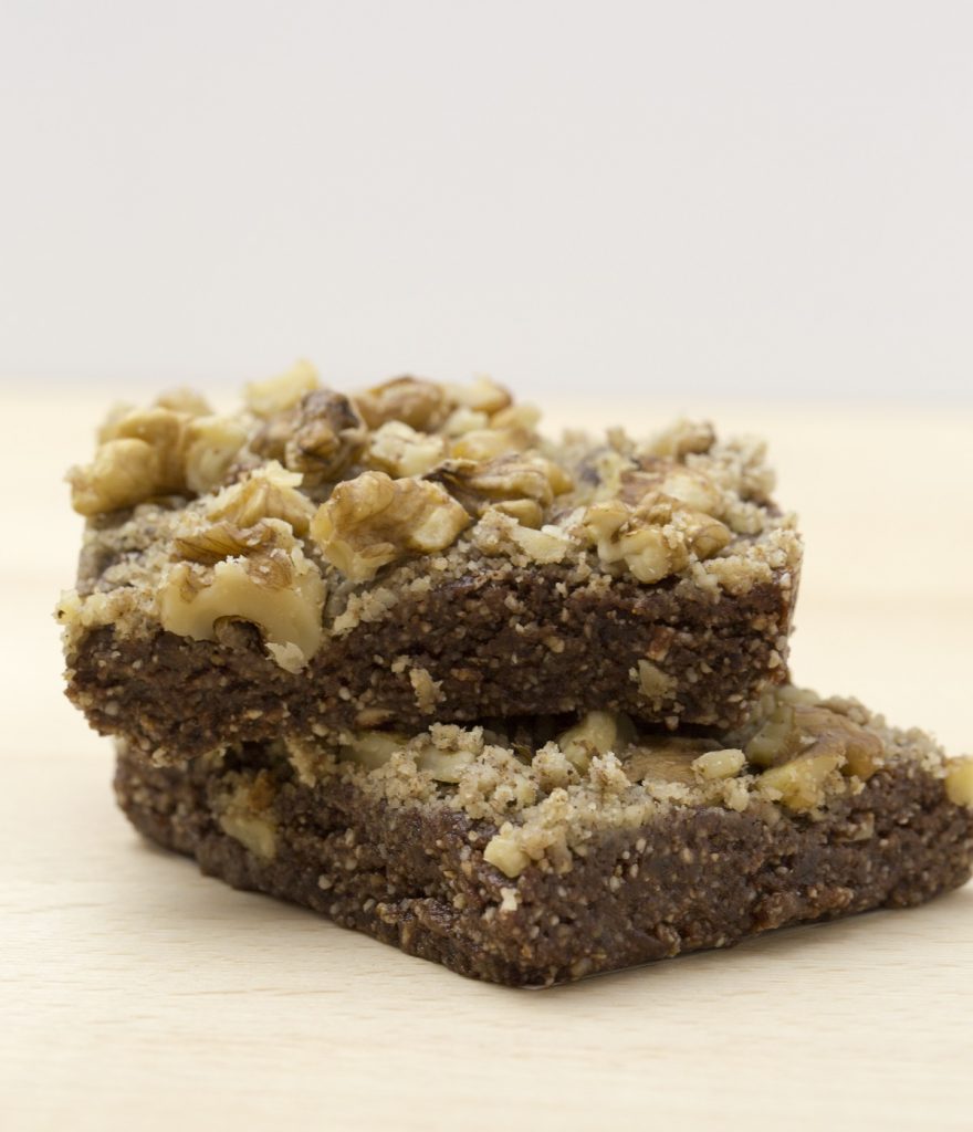 Λιώνουμε πολύ καλά τα καρύδια να γίνουν πολτός. Προσθέτουμε τα υπόλοιπα υλικά, χτυπάμε καλά και τα βάζουμε σε φόρμα πασπαλισμένη με χαρουπόσκονη. Από πάνω γαρνίρουμε με ψιλοκομμένο καρύδι ανακατεμένο με κανέλα ή τριμμένο φιστίκι Αιγίνης. Βάζουμε το γλυκό στο ψυγείο για 2-3 ώρες και σερβίρουμε.