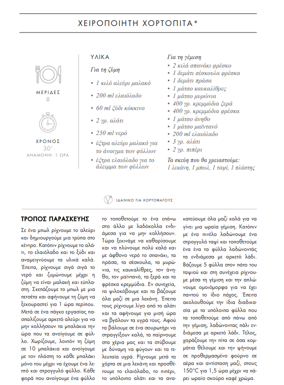 Παίρνοντας το βιβλίο στα χεριά μου, από την πρώτη ματιά κατάλαβα πως είναι ιδιαίτερα εύχρηστο και περιεκτικό σε πληροφορίες. Στις πρώτες σελίδες μετά τα βιογραφικά και εισαγωγικά σημειώματα υπάρχει ένας μικρός οδηγός για τα σκεύη που θα χρειαστούν για την εκτέλεση των συνταγών τα οποία δεν είναι άλλα από τα κοινά μαγειρικά σκεύη που έχουμε στην κουζίνα μας. Nα σημειώσω ακόμη πως κάποιες συνταγές επισημαίνονται με αστερίσκους (*) για να διευκρινιστούν χορτοφαγικές προτάσεις, αλλά και γεύματα που αγαπούν τα παιδιά.
