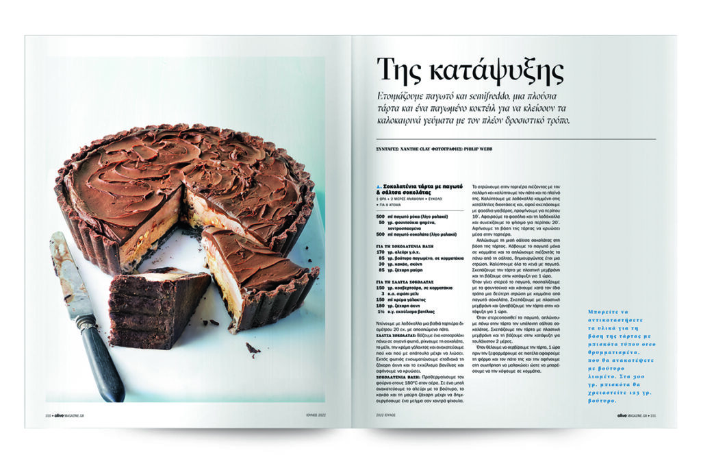 Semifreddo µε φιστικοβούτυρο & εύκολο crumble, Σιτσιλιάνικο µπριός µε παγωτό & γρανίτα καφέ, Αρµενοβίλ, Παγωµένο γιαούρτι µε κόκκινα φρούτα & σοκολάτα, Παρφέ µε σοκολάτα & αµύγδαλα, Εύκολο παγωτό στρατσιατέλα, Γρανίτα λεµονάδα & βυσσινάδα.