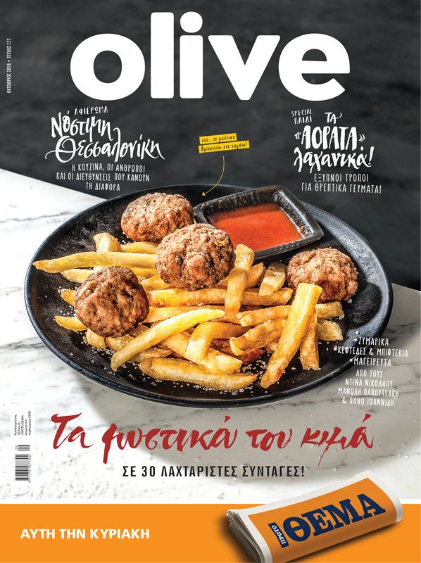 Το Olive κυκλοφορεί την Κυριακή 30 Σεπτεμβρίου με ένα μεγάλο αφιέρωμα στην κουζίνα της Θεσσαλονίκης και έναν χρήσιμο οδηγό διατροφής για τα παιδιά, από το πρωινό και το σνακ του σχολείου μέχρι το γεύμα και το δείπνο.