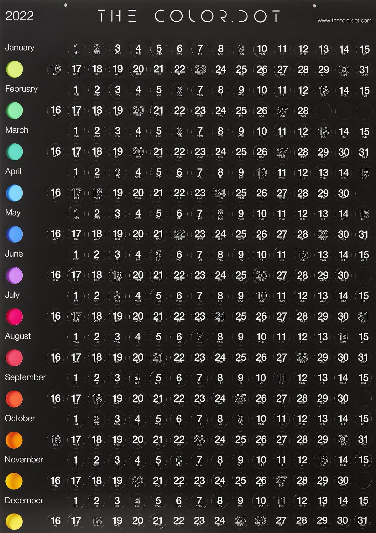 Όλοι έχουμε στις κουζίνες μας ένα ημερολόγιο τοίχου. Είναι αυτό που κοιτάμε σχεδόν καθημερινά όταν θέλουμε να προγραμματίσουμε τις δουλειές μας, τα ταξίδια μας και όλες τις δραστηριότητες τις δικές μας αλλά και των παιδιών μας. Αυτές τις μέρες, λοιπόν, είδαμε το ετήσιο ημερολόγιο The Color Dot και είναι ίσως το πιο όμορφο και πρακτικό ημερολόγιο που έχουμε δει!