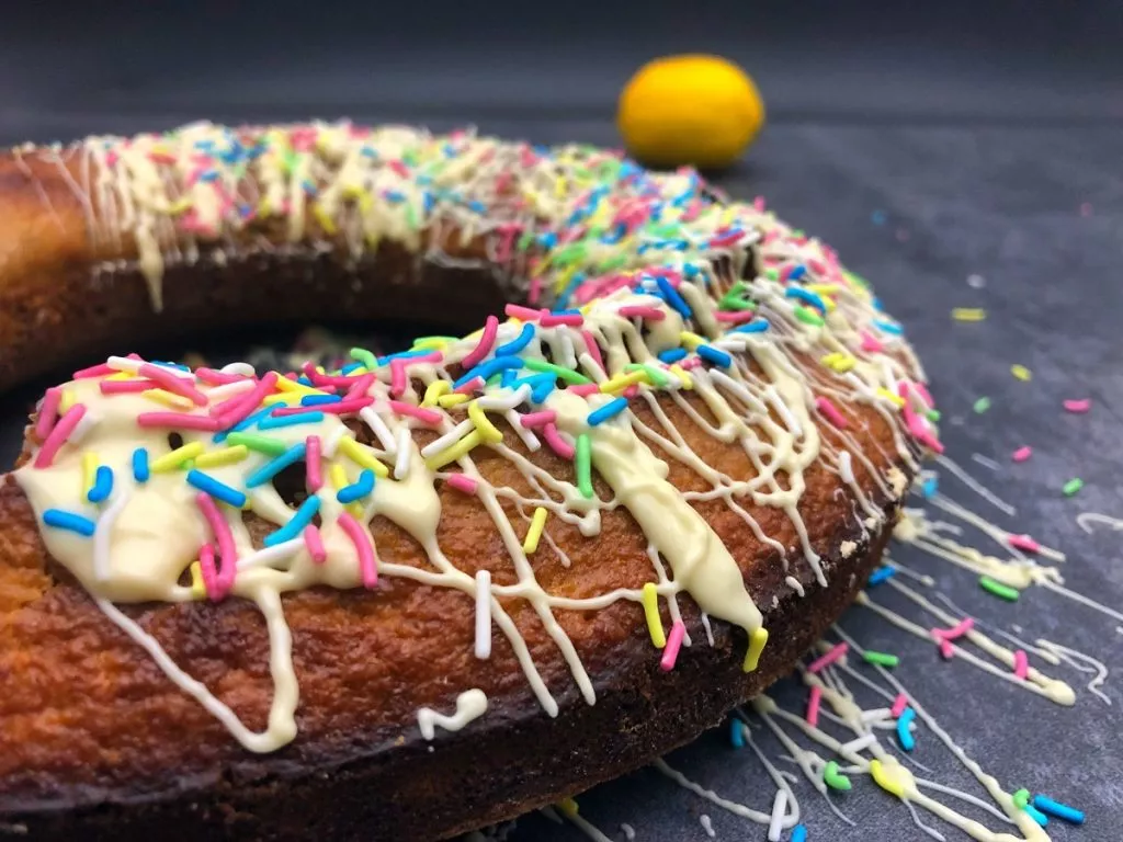 Από τα αλμυρά περνάμε στα γλυκά, αλλά στην πιο υγιεινή τους εκδοχή. Ένα απολαυστικό κέικ βρώμης με λεμόνι για την απαραίτητη αντίθεση, λευκή σοκολάτα και αγαπημένα χρωματιστά τρουφάκια για να το λατρέψουν τα παιδιά.