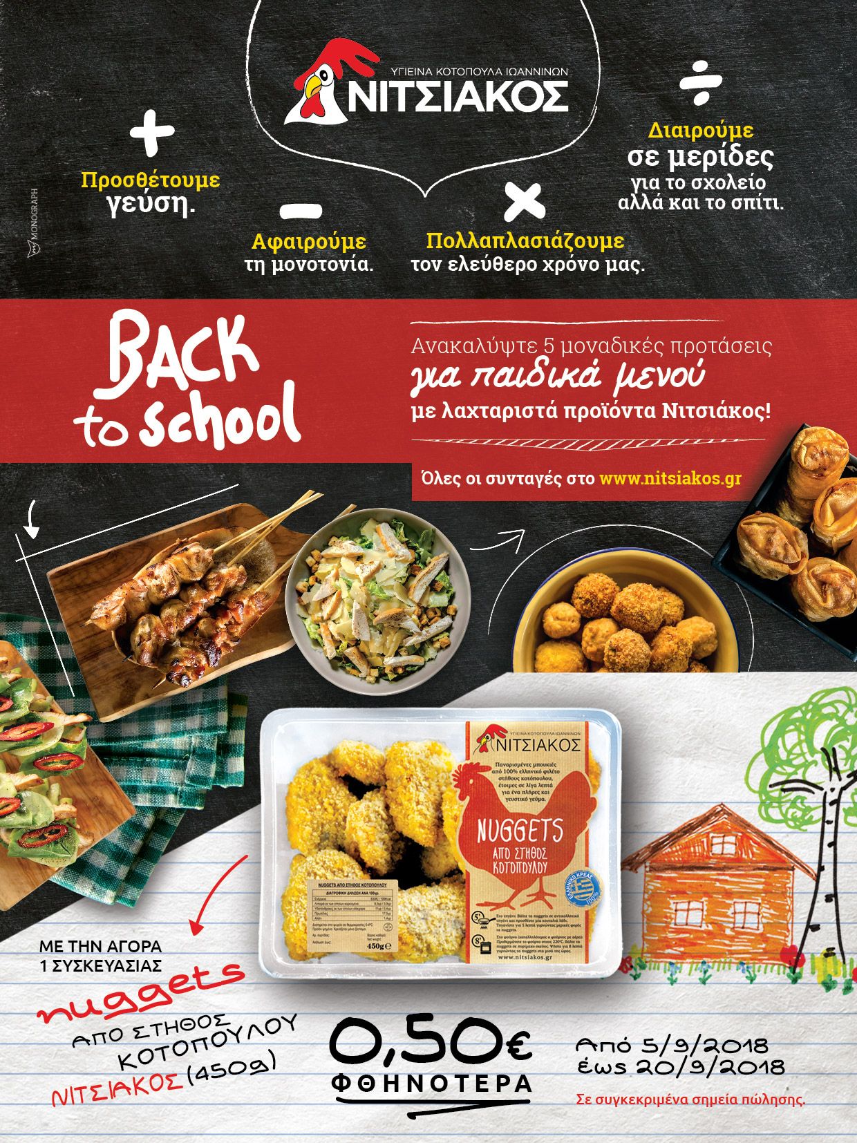 Ενισχυτικά των παραπάνω ενεργειών, και στο πλαίσιο του Back to School, δίνεται η δυνατότητα απόκτησης συσκευασίας Nuggets από στήθος κοτόπουλου με εκπτωτικό κουπόνι 0,50 ευρώ ανά συσκευασία. Το κουπόνι θα διατίθεται στα ράφια των καταστημάτων που πουλάνε το συγκεκριμένο προϊόν.