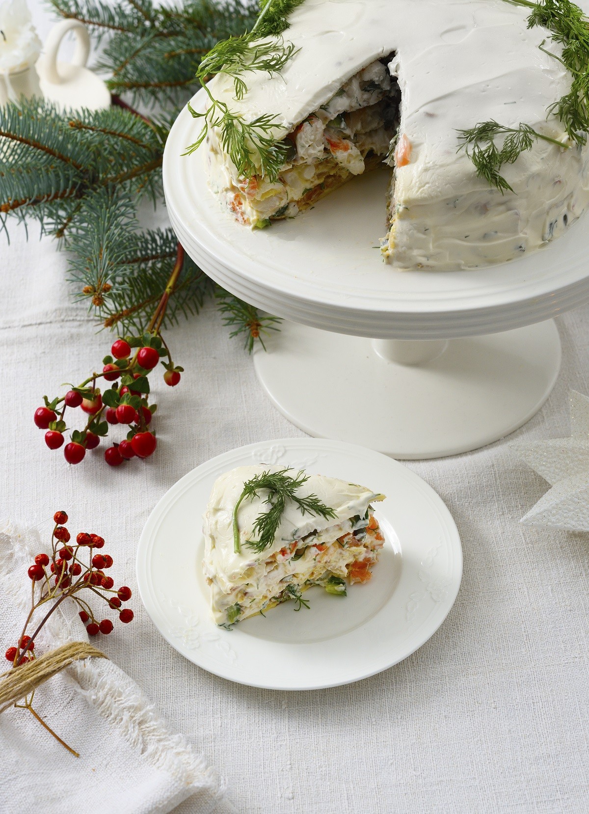 Λευκή τούρτα με σολομό και γαρίδες