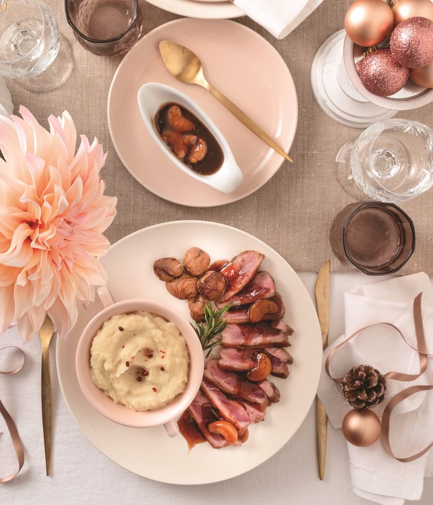 Στήθος πάπιας με μανταρίνια, πουρέ σελινόριζας και κάστανα