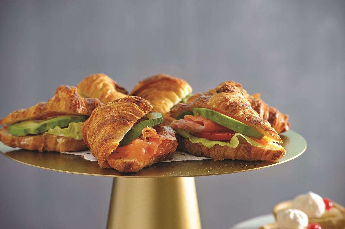Κόβουμε τα κρουασάν στα δύο (οριζόντια) και αλείφουμε με μαγιονέζα το κάθε κομμάτι. Τέλος, τοποθετούμε πάνω σε ένα κομμάτι κρουασάν τον σολομό, το μαρούλι, την ντομάτα, το αβοκάντο και τα σκεπάζουμε με το άλλο κομμάτι. Ακολουθούμε την ίδια διαδικασία και με τα υπόλοιπα κομμάτια και σερβίρουμε.