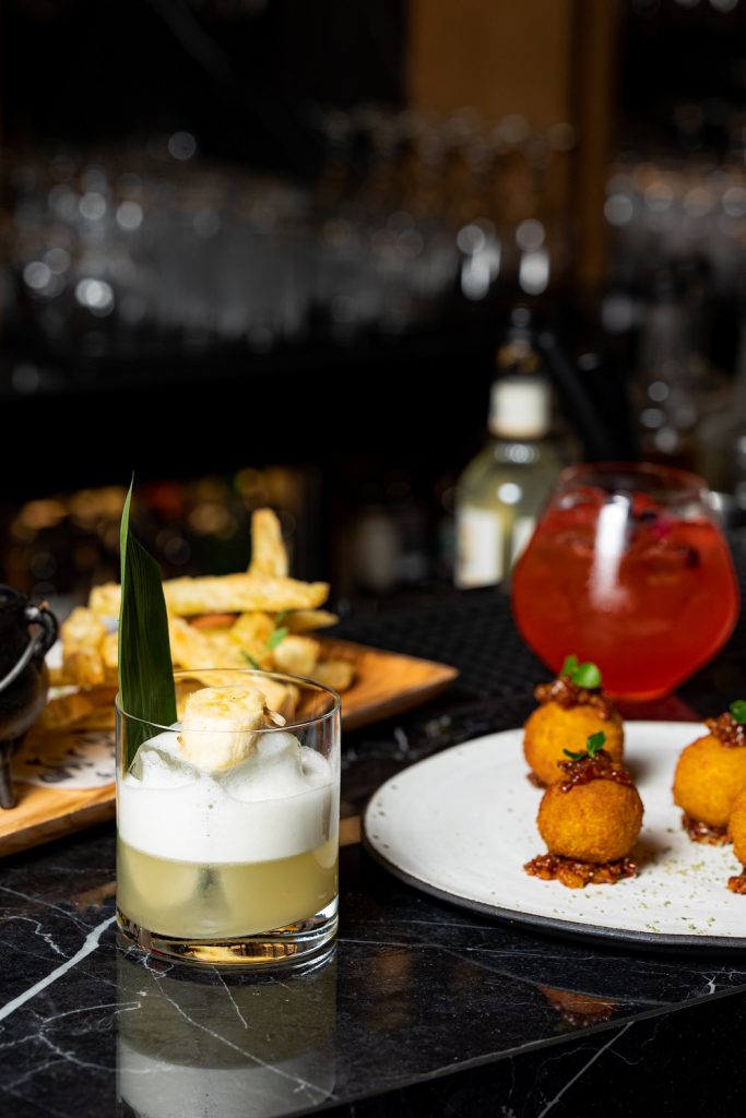 Για να συνοδεύσετε το φαγητό σας, υπάρχουν εκλεκτές ετικέτες κρασιών από την ενημερωμένη κάβα ή τα ευφάνταστα cocktails που θα σας προτείνει ο bartender πίσω από τη μεγάλη μαρμάρινη μπάρα, χαρίζοντας επιπλέον χρώμα και vibe στη βραδιά.