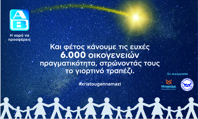 Μέσα από μια 360ο καμπάνια, η ΑΒ Βασιλόπουλος αξιοποιεί κάθε κανάλι επικοινωνίας της και αφηγείται ανθρώπινες ιστορίες που μας υπενθυμίζουν ότι τα Χριστούγεννα είναι μια ευχή, μια συνάντηση, είναι η αγάπη που μας φέρνει όλους πιο κοντά. Η δύναμη της προσφοράς, που χαρακτηρίζει κάθε ενέργεια της ΑΒ Βασιλόπουλος, αποτυπώνεται στο τηλεοπτικό της σποτ, που αναδεικνύει τη μαγεία των γιορτών. Γιατί τα Χριστούγεννα είναι πολλά περισσότερα από μια γιορτή. Είναι η χαρά να προσφέρουμε μαζί στους συνανθρώπους μας και να ζήσουμε #xristougennamazi!