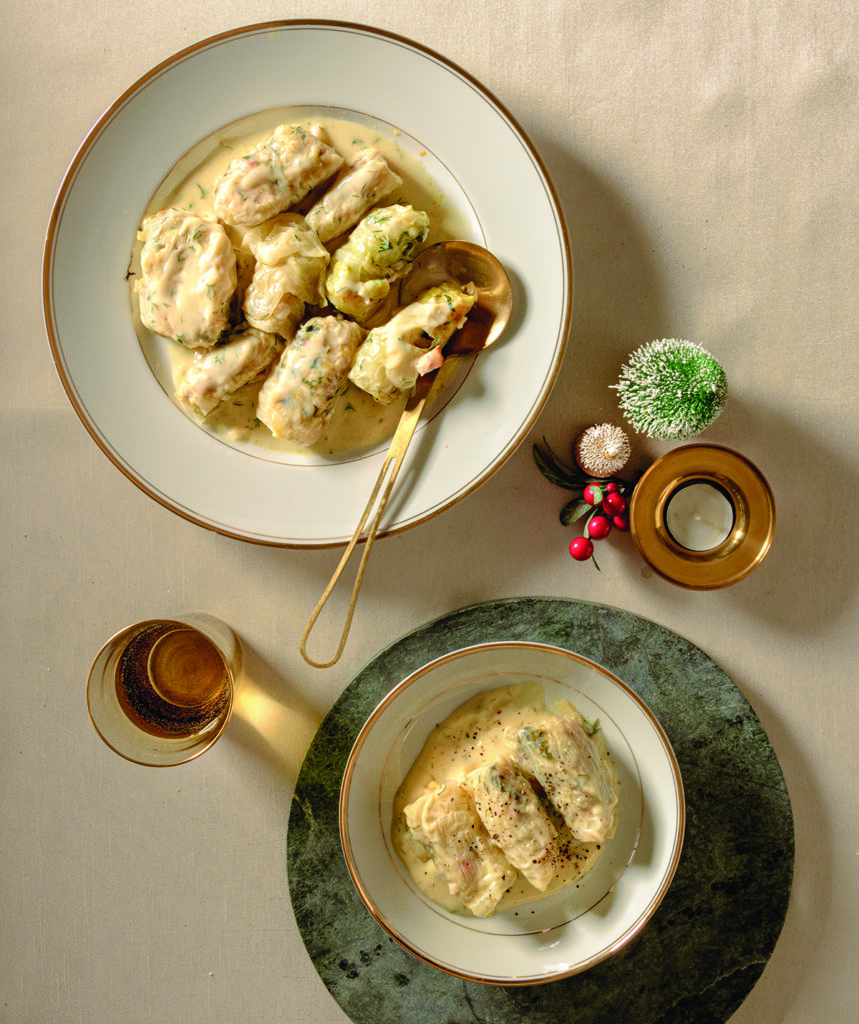 6. Λαχανοσαρμάδες με ψάρι και θαλασσινά αυγολέμονο