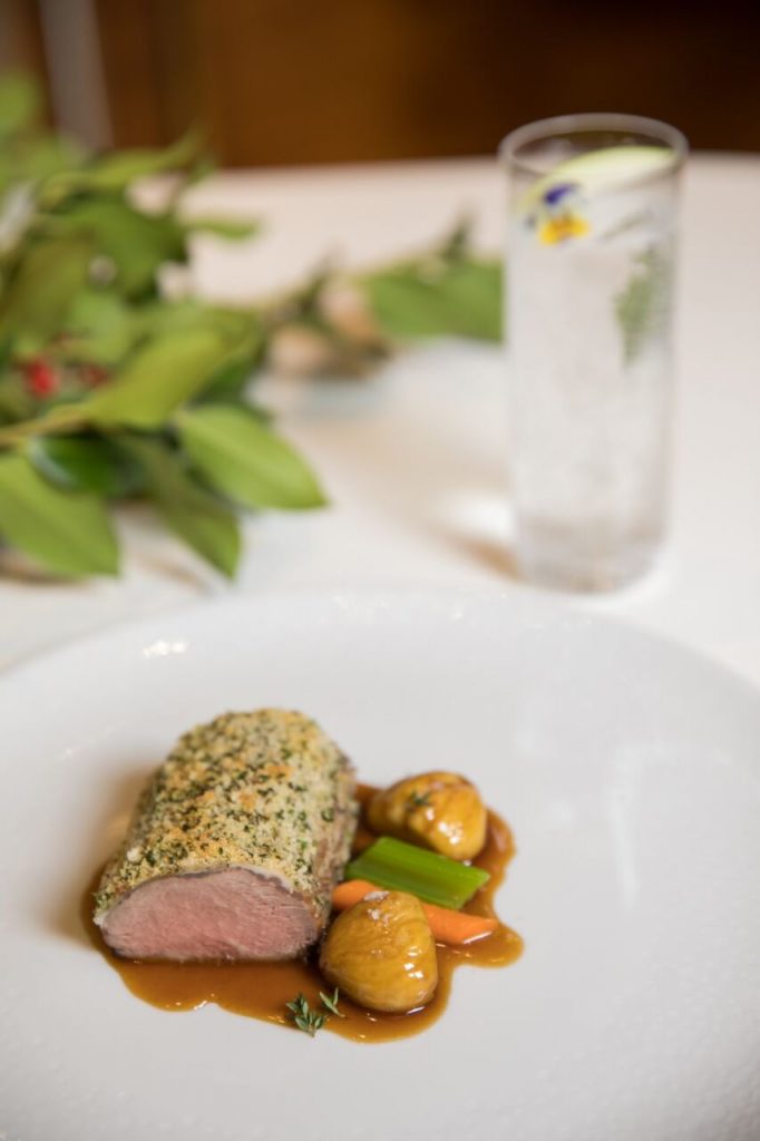 Όταν είναι έτοιμο, κόβουμε το καρέ σε φέτες, το τοποθετουμε σε ζεστά πιάτα, το γαρνίρουμε με τα κάστανα και σερβίρουμε