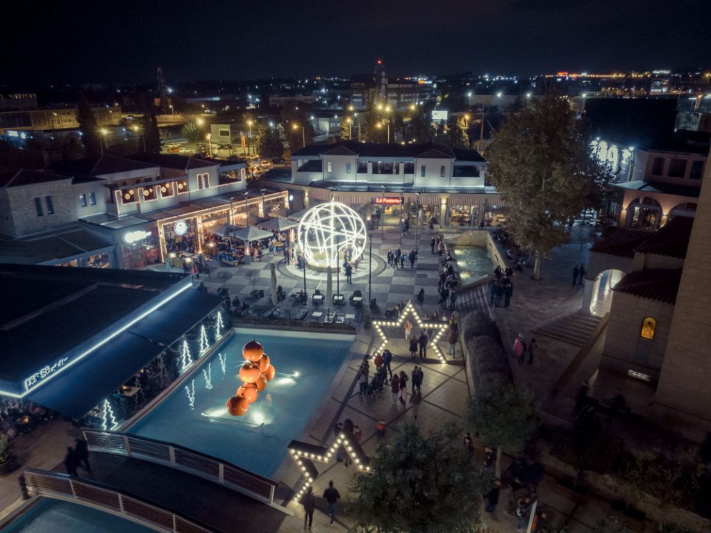 Αμέτρητα λαμπιόνια, τεράστιες χριστουγεννιάτικες μπάλες, φωτεινά αστέρια και χριστουγεννιάτικα δέντρα. Ένα σκηνικό γεμάτο χρώματα και «αστερόσκονη» μεταφέρει τη μαγεία των ημερών με τον πιο εντυπωσιακό τρόπο και κάνει τα Χριστούγεννα ακόμα πιο φωτεινά και αισιόδοξα.