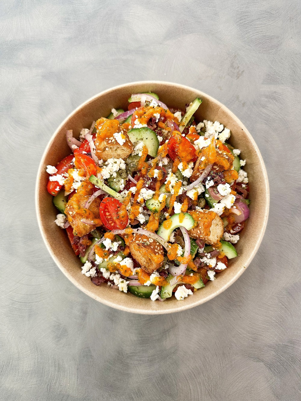 Στις σαλάτες ξεχωρίζουν αυτή με την τρίχρωμη κινόα, καρδιές μαρουλιού baby gem, τραγανό μπέικον, ραπανάκι, φουντούκι και dressing φυστικοβούτυρο καθώς και η «κλασική» Χωριάτικη με ντοματίνια, αγγούρι, κρεμμύδι, κάπαρη, ελιές, φέτα, dressing ντομάτας, ρίγανη και κρουτόν από κουλούρι Θεσσαλονίκης, που της χαρίζει μια εξαιρετική τραγανότητα. Στα ορεκτικά, το Hot Dog Σπετσοφάι, με χοιρινό λουκάνικο με πράσο, τραγανό κρεμμύδι και μαγιονέζα, δίνει ελληνική διάσταση σε ένα δημοφιλές street food των ΗΠΑ. Εξαιρετικές και οι τραγανές φρέσκιες πατάτες, που κόβονται σε κύβους και σερβίρονται με λάδι τρούφας και παλαιωμένη γραβιέρα.