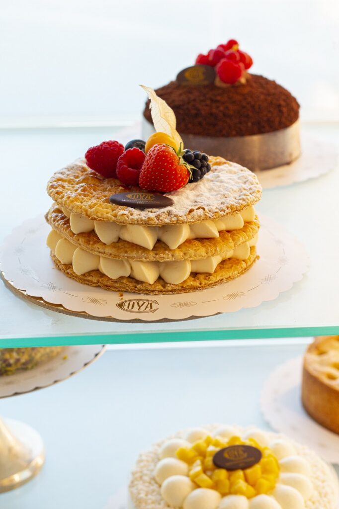 Όλα τα γλυκά για τα οποία το Cova είναι διάσημο παγκοσμίως τα βλέπουμε σε μια εντυπωσιακή αριστοκρατική βιτρίνα στην είσοδο του καταστήματος. Το πρώτο ιστορικό καφέ Cova άνοιξε στο Μιλάνο το 1817, γι’ αυτό και η αρχοντική του διακόσμηση είναι τέτοια που μας ταξιδεύει πίσω στον χρόνο.