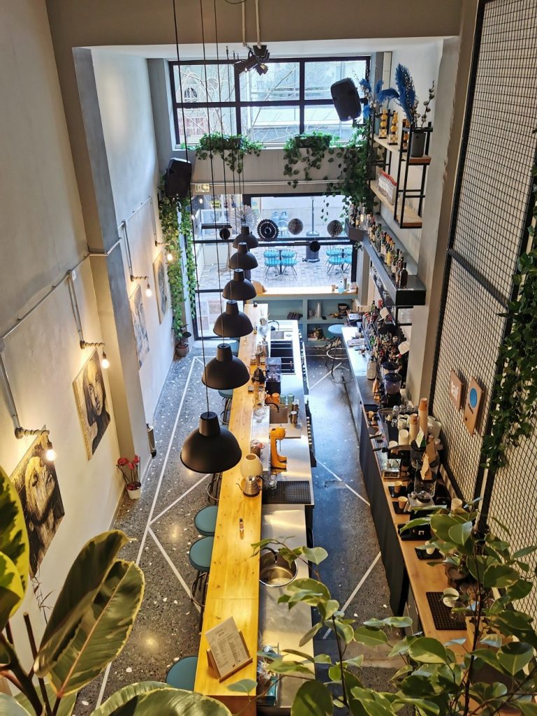 Η urban chic διακόσμηση, με τους πίνακες της Ρανιώς Σαρρή, που κοσμούν τους τοίχους, δημιουργούν μια χαλαρή και cozy ατμόσφαιρα, που προδιαθέτει θετικά τόσο για καφέ όσο και για ποτό, τόσο το πρωί, όσο και το απόγευμα και το βράδυ.