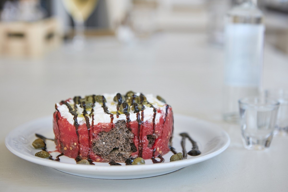 Όσο ο καιρός το επιτρέπει, συστήνεται να επιλέξετε την αυλή του, για να δοκιμάσετε, μεταξύ άλλων, εναλλακτικό λαχματζούν με καπνιστό ψάρι, κρεμμύδι, ντομάτα και πιπεριές, αλλά και γάρο ή αλλιώς μια αρχαία λιχουδιά από πολτοποιημένα παστά ψάρια, που μάλιστα τα εξήγαγαν από τα νησιά του Αιγαίου σε όλη τη Μεσόγειο.