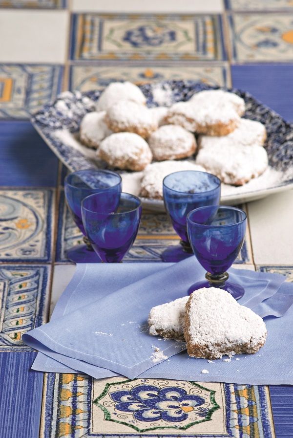Μονεμβασιά: Περιέχουν σιμιγδάλι, ψήνονται για λίγο και πασπαλίζονται με ζάχαρη άχνη σε σχήματα όπως του κουραμπιέ.