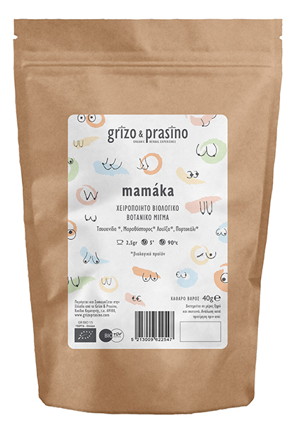 Από την βοτανική συλλογή τους ξεχωρίσαμε ένα μείγμα που απευθύνεται σε ένα εξαιρετικά ιδιαίτερο κοινό, τις μωρομάνες. Λέγεται mamaka και έχει δημιουργηθεί για τις μαμάδες που προσπαθούν να αυξήσουν την παραγωγή του γάλακτος αλλά και για τους μπαμπάδες που θα πάρουν μια ζεστή αγκαλιά το μωρό τους. Το μείγμα περιέχει μαραθόσπορο, λουίζα, τσουκνίδα και πορτοκάλι. Διαβάστε περισσότερα στο www.grizoprasino.com