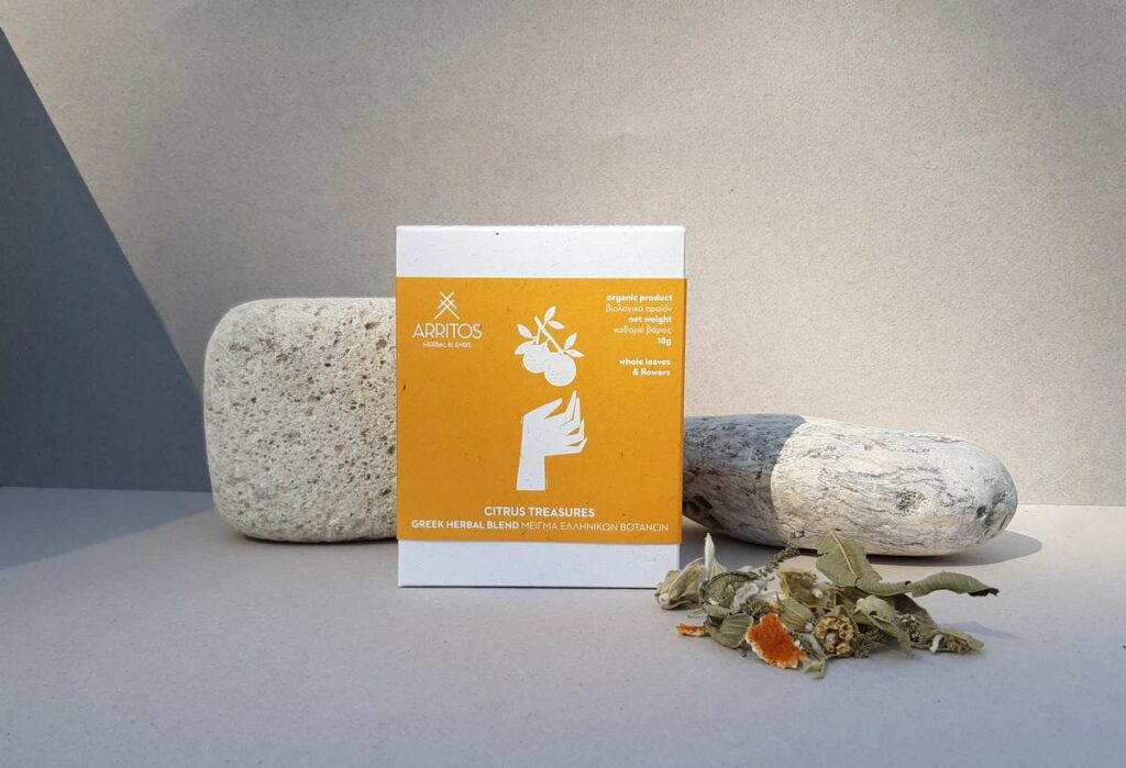 Το βοτανικό μείγμα Citrus Treasures, περιέχει λουϊζα, μαλοτήρα, δεντρολίβανο, μέντα και μανταρίνι Χίου. Αρωματικά και γευστικά επικρατούν οι λεμονάτες νότες της λουΐζας που σε συνδυασμό με το μανταρίνι Χίου δίνουν ένα αντιοξειδωτικό ρόφημα ευεξίας. Η μαλοτήρα ισορροπεί τα αρώματα, ενώ στην επίγευση, η μέντα αφήνει ένα δροσερό αίσθημα ευεξίας. Διαβάστε περισσότερα στο www.arritos.gr.