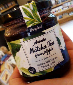 Η μαρμελάδα από αρώνια, με πράσινο τσάι μάτσα και με πράσινο μήλο περιέχει μόλις 15% ζάχαρη και αποτελεί ιδανική λύση για το πρωινό γεύμα. Πρόκειται για μία μαρμελάδα πλούσια σε βιταμίνες, ιχνοστοιχεία, αντιοξειδωτικά και πολλές ευεργετικές ιδιότητες για τον ανθρώπινο οργανισμό. Παράγεται στην Εύβοια από την εταιρία Berryland και μπορείτε να την προμηθευτείτε από το http://berryland.gr.
