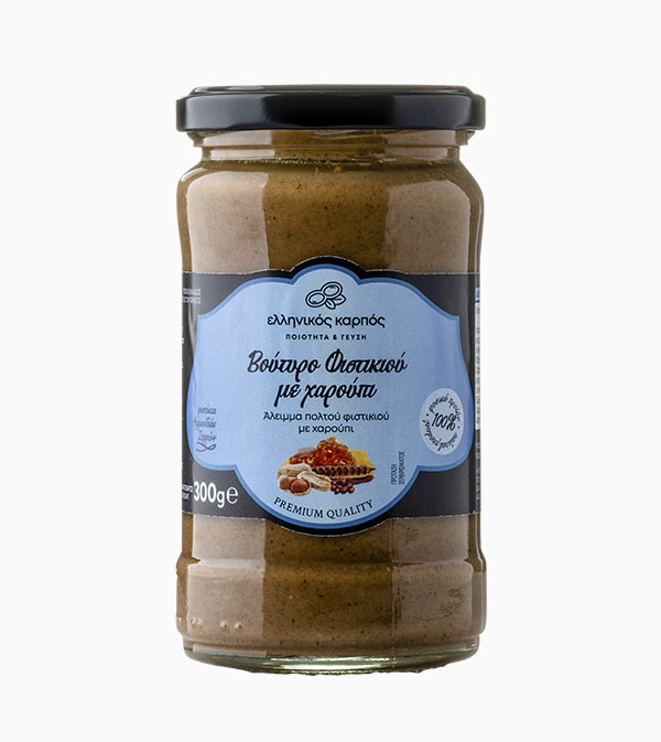 Η εταιρία Ελληνικός Καρπός, με έδρα στις Σέρρες, ειδικεύεται στην καλλιέργεια και επεξεργασία φιστικιού από το 2004. Με την πρώτη ύλη που παράγει, δημιουργεί εκλεκτής ποιότητας φιστικοβούτυρο με υψηλή περιεκτικότητα σε πρωτεΐνη και σε λαχταριστούς γευστικούς συνδυασμούς. Ο γευστικός συνδυασμός από ελληνικά ψημένα φιστίκια και χαρούπι, αποτελεί ιδανική πρόταση για ενέργεια στο πρωινό γεύμα. Περιέχει: 84% αλεσμένο ψημένο φιστίκι, 8% μέλι, 6% αλεύρι χαρουπιού και ηλιέλαιο. Αναζητήστε το στα καταστήματα www.olicatessen.gr.