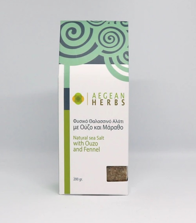 Η Aegean Herbs ξεκίνησε τη λειτουργία της το 2014 στην Αμοργό, με μία μικρή καλλιέργεια από χαρακτηριστικά αυτοφυή αρωματικά του νησιού. Στην πορεία συνεργάστηκε με άλλους μικρούς παραγωγούς που μοιράζονται κοινή φιλοσοφία και όραμα. Έτσι, πλέον διαθέτει ελληνικά, φυσικά και βιολογικά βότανα, βοτανικά μείγματα και αρωματικό θαλασσινό αλάτι. Όλα τα προϊόντα παράγονται με επιλεγμένες πρώτες ύλες από την ελληνική φύση. Το φυσικό θαλασσινό αλάτι προέρχεται από Ελληνικές αλυκές, είναι αρωματισμένο με ούζο Μυτιλήνης και μάραθο από την Αμοργό. Είναι ένα ιδανικό μείγμα για συνταγές με μύδια, γαρίδες, ψαρόσουπα, ριζότο ή μακαρονάδες θαλασσινών. Περισσότερες πληροφορίες θα βρείτε στο https://www.aegeanherbs.com/.