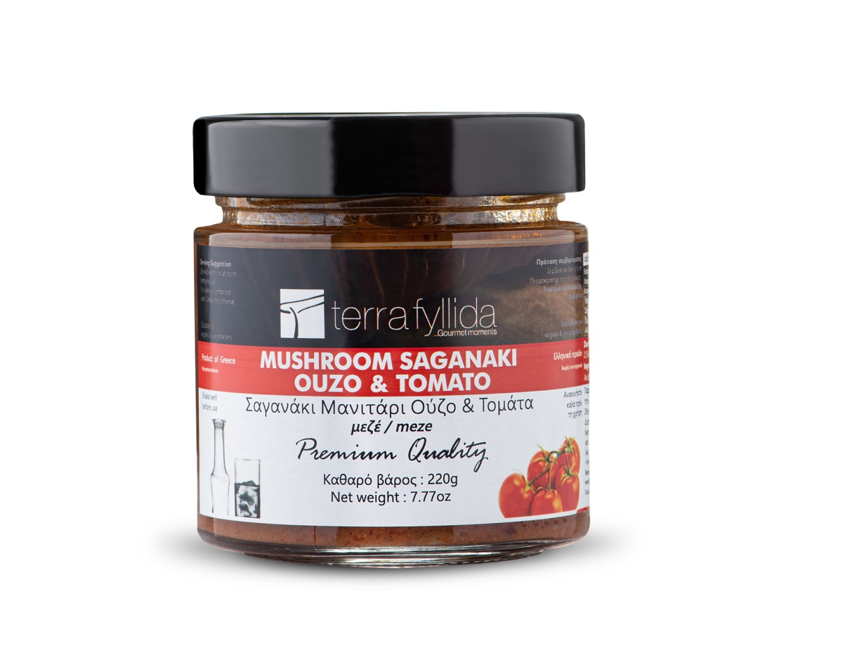 Η Terra Fyllida βρίσκεται στη Νέα Ζίχνη Σερρών και εξειδικεύεται στην παραγωγή καινοτόμων προϊόντων αποκλειστικά από φρέσκα μανιτάρια, στοχεύοντας στην ανάδειξη της υψηλής διατροφικής τους αξίας. Το σαγανάκι αγαρικού μανιταριού με ούζο και τομάτα αποτελεί έναν τολμηρό γευστικό συνδυασμό και προτείνεται για τσιπουρομεζέ. Πρόκειται για φρέσκα αγαρικά μανιτάρια κομμένα σε μεγάλα κομμάτια που σωτάρονται σε εξαιρετικό παρθένο ελαιόλαδο και σιγοβράζουν μαζί με ούζο, σάλτσα τομάτας και εκλεκτά μυρωδικά. Περισσότερες πληροφορίες θα βρείτε στο https://terrafyllida.gr/.