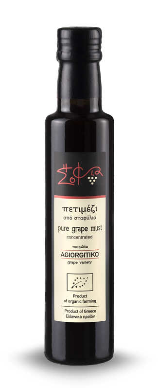 Ο συμπυκνωμένος χυμός από σταφύλια ποικιλίας «Αγιωργίτικου» αποτελεί ένα 100% φυσικό γλυκαντικό χωρίς προσθήκη ζάχαρης. Πρόκειται για ένα σιρόπι πλούσιο σε σίδηρο και αντιοξειδωτικά με σκούρο κόκκινο χρώμα και πινελιές ρουμπινιού, αρώματα από πιπέρι, γαρίφαλο και λιαστές ντομάτες. Έχει πλούσιο σώμα, γλυκιά γεύση με μια όξινη νότα, μακρά και γλυκιά επίγευση. Δοκιμάστε το στα επιδόρπια, σε ζεστά ροφήματα, σε πράσινες σαλάτες, καραμελώστε κρέας ή απλά βάλτε το πάνω στο παγωτό σας. Είναι βιολογικό προϊόν και παράγεται στη Νεμέα από τη «Σοφία της Φύσης». Περισσότερες πληροφορίες μπορείτε να βρείτε εδώ: www.sofiatisfisis.gr.