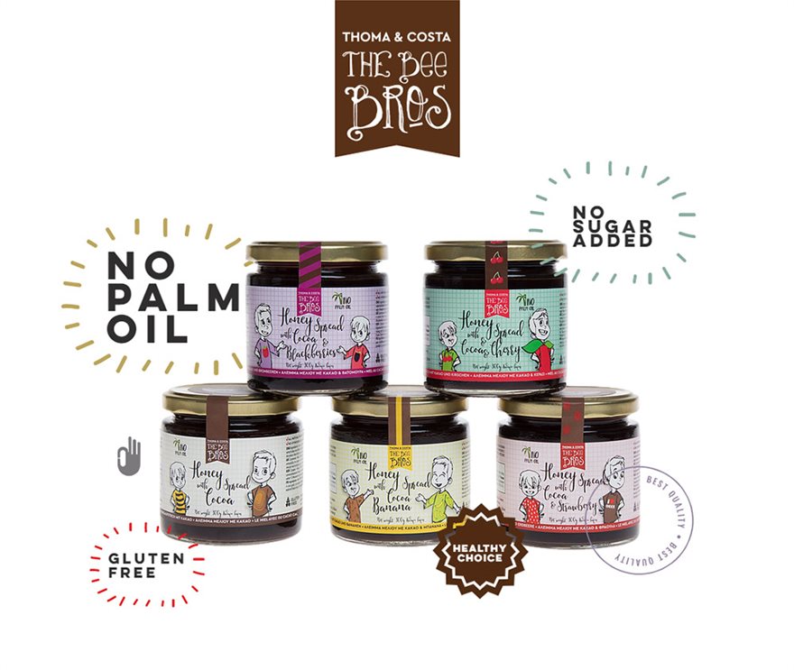 Βασικά συστατικά όλων των προϊόντων The Bee Bros είναι τα δημητριακά ολικής άλεσης και το μέλι, το οποίο συνδυάζεται με κακάο αλλά και άλλες γεύσεις για ακόμα μεγαλύτερη απόλαυση. Η γκάμα των αλειμμάτων μελιού με κακάο περιλαμβάνει γεύση φράουλα, μπανάνα, κεράσι, αλλά και βατόμουρο. Και το πιο παράξενο παιδί, που δεν τρώει το μέλι, αυτό θα το τιμήσει, αφού περιέχει κακάο και έχει γεύση σοκολατένια!
