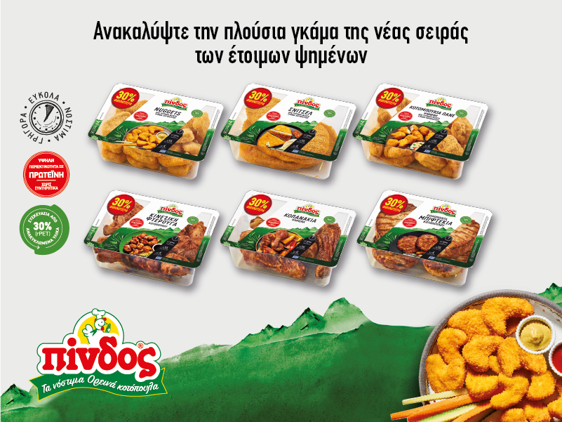 Οι γρήγοροι ρυθμοί της καθημερινότητας ζητούν εύκολες λύσεις για τα γεύματά μας. Και αν αυτές οι εύκολες λύσεις είναι και πλούσιες σε θρεπτικά συστατικά, τότε αυτό είναι το καλύτερο. Η νέα σειρά προϊόντων από κοτόπουλο «Έτοιμα Ψημένα» ΠΙΝΔΟΣ αποτελεί την ιδανική και πιο νόστιμη επιλογή για τα καθημερινά μας γεύματα. Τα Έτοιμα Ψημένα έχουν υψηλή περιεκτικότητα σε πρωτεΐνη και χωρίς συντηρητικά, από 100% ελληνικά κοτόπουλα ΠΙΝΔΟΣ, ενώ είναι έτοιμα σε λίγα μόλις λεπτά, προσφέροντας μια γρήγορη λύση για ένα θρεπτικό γεύμα για όλη την οικογένεια.