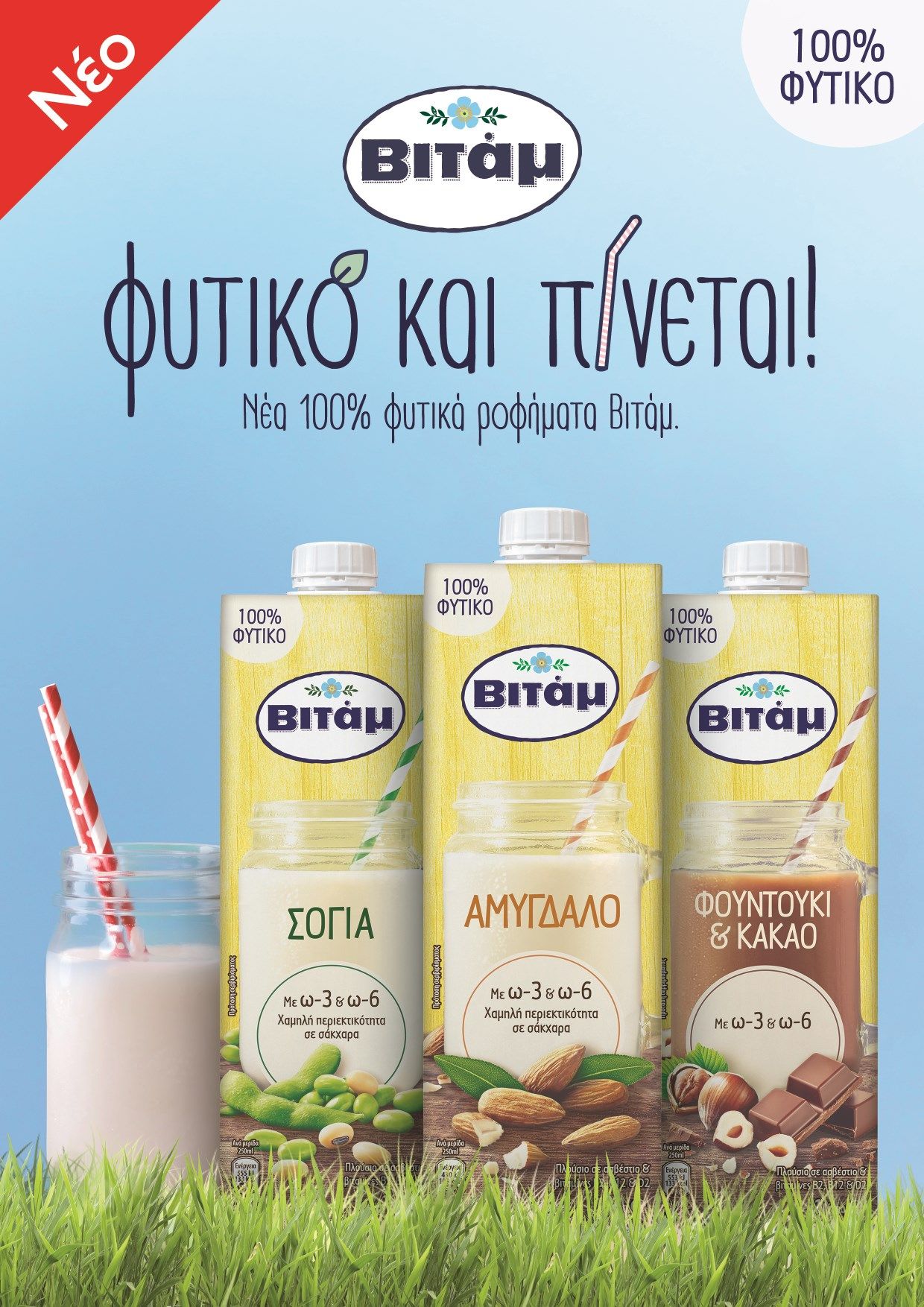 Μια ακόμη γευστική απάντηση στις σύγχρονες διατροφικές τάσεις δίνει το ΒΙΤΑΜ, λανσάροντας τρία 100% φυτικά ροφήματα που συμβαδίζουν απόλυτα με τις πολύτιμες αξίες της ευεργετικής για τον οργανισμό φυτικής διατροφής.