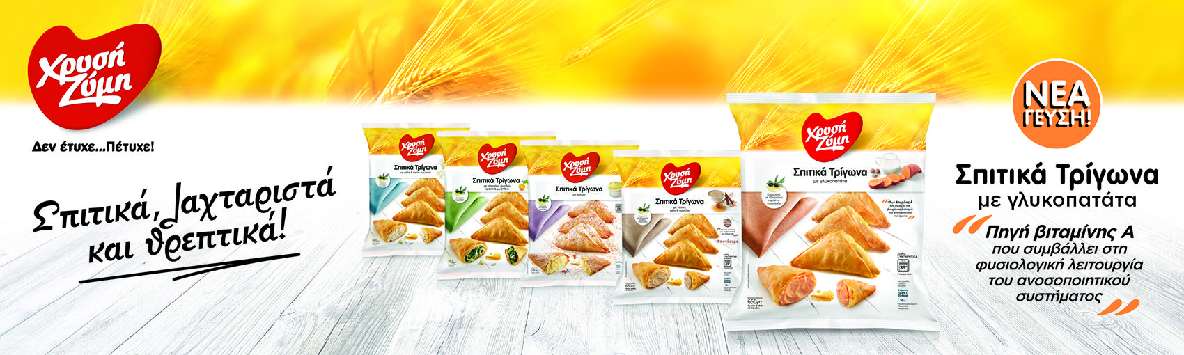 Τα Σπιτικά Τρίγωνα από τη Χρυσή Ζύμη κυκλοφορούν στους εξής συνδυασμούς:
