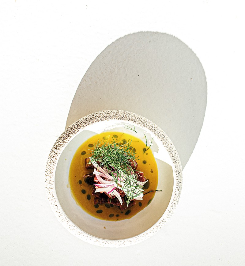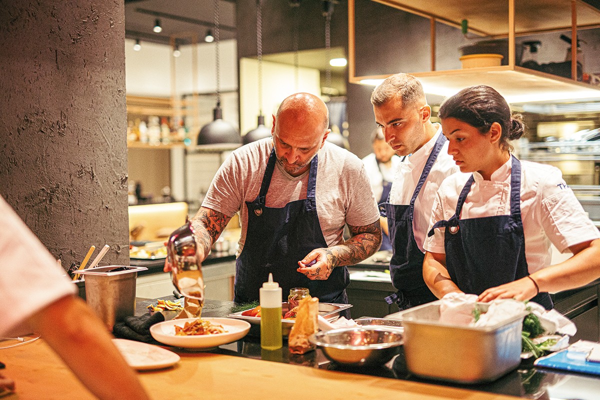 Οι εμπειρίες, τα ταξίδια, οι κουζίνες και οι πρώτες ύλες που έχει δουλέψει κάθε μάγειρας είναι σίγουρα καθοριστικές. Σε αυτά έρχονται να προστεθούν ο χαρακτήρας, η διάθεση, το περιβάλλον, οι συνθήκες. Στην Τήνο ήρθα για πρώτη φορά πολύ πρόσφατα και αμέσως ένιωσα ότι εδώ είναι τόπος μου. Είναι ο τόπος που με ηρεμεί ενώ ταυτόχρονα μου δίνει ώθηση, δύναμη, έμπνευση. Οι διαφορετικές γεύσεις και η ένταση στα πιάτα είναι για μένα μια άποψη της δημιουργικότητάς μου και δεν πρόκειται να σταματήσω να λειτουργώ με αυτό τον τρόπο. Δεν θα βγάλω εκτός του μενού μου, για παράδειγμα, το σεβίτσε για να μη θεωρηθεί ότι δεν υποστηρίζω την ελληνική παράδοση, όταν οι πρώτες ύλες μου είναι ελληνικές. Εξάλλου, είναι πολύ μεγάλη η συζήτηση για το τι είναι ή μέχρι πού φτάνει η κάθε τοπική ή εθνική κουζίνα: Είναι οι πρώτες ύλες που την καθορίζουν; Είναι η συνταγή; Είναι ο τόπος όπου φτιάχνεται και προσφέρεται; Είναι η καταγωγή ή εθνικότητα του ανθρώπου που την προσφέρει; Είναι οι επιρροές; Η ρητορική μου αντερώτηση κάθε φορά πάνω σε αυτό το θέμα είναι: «Ο μουσακάς είναι ελληνικός;».