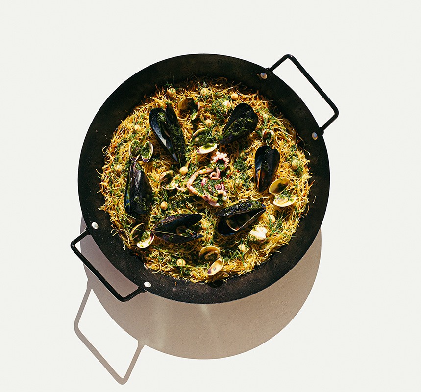 Χυλωμένη πάστα φιδέ θαλασσινών με mojo verde