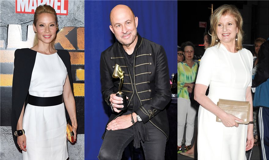 Από αριστερά: η ηθοποιός Λούσι Λιου, ο σχεδιαστής Τζον Βαρβάτος, η Ελληνοαμερικανίδα σιδηρά κυρία της ενημέρωσης Αριάννα Χάφινγκτον
