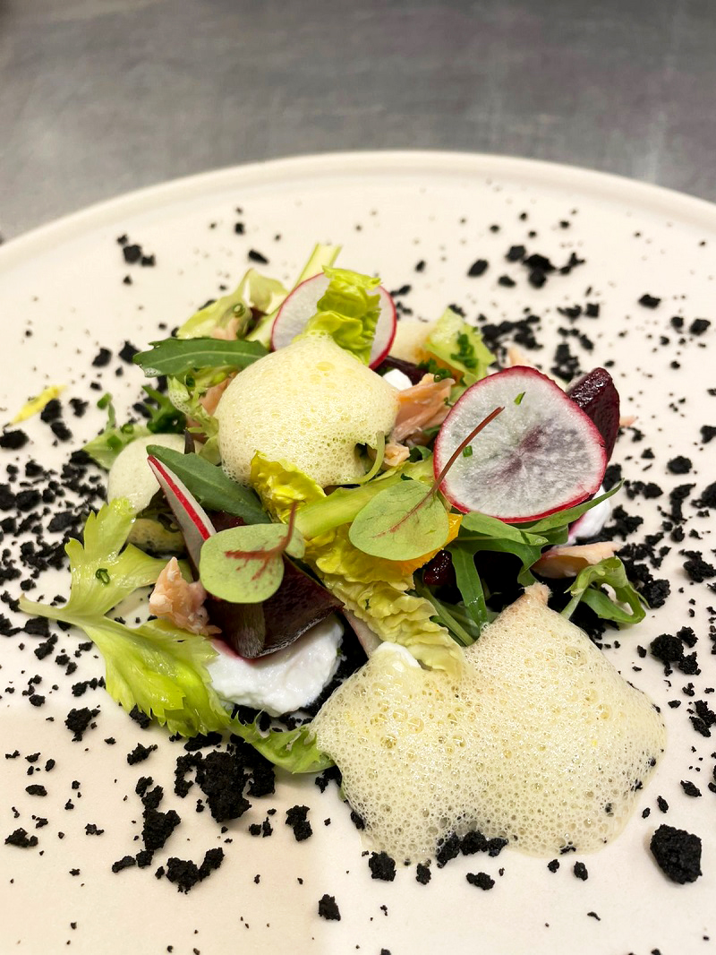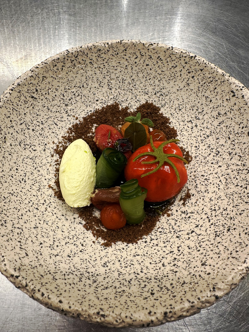 Όταν την ρωτάω τι θα μπορούσε να την στρεσάρει δουλεύοντας σε ένα τόσο γαλήνιο περιβάλλον, μακριά από την κλασική κουζίνα ενός εστιατορίου, μου απαντά: «Αν είναι ένα fine dinning πιάτο η αγωνία που ζω κάθε φορά για να βγει σωστά και στους σωστούς χρόνους είναι η ίδια με αυτή που θα ζούσα και στην κουζίνα ενός εστιατορίου. Εδώ όμως έχεις να αντιμετωπίσεις και κάτι άλλο: Το πιάτο που θα φύγει θα πρέπει να ανέβει στο sundeck και εκεί έχει 4 μποφόρ και αναρωτιέσαι θα φτάσει καλά δεν θα φτάσει; Θα φάνε μέσα ή έξω; Ο καιρός άλλοτε είναι σύμμαχος και άλλοτε εχθρός».
