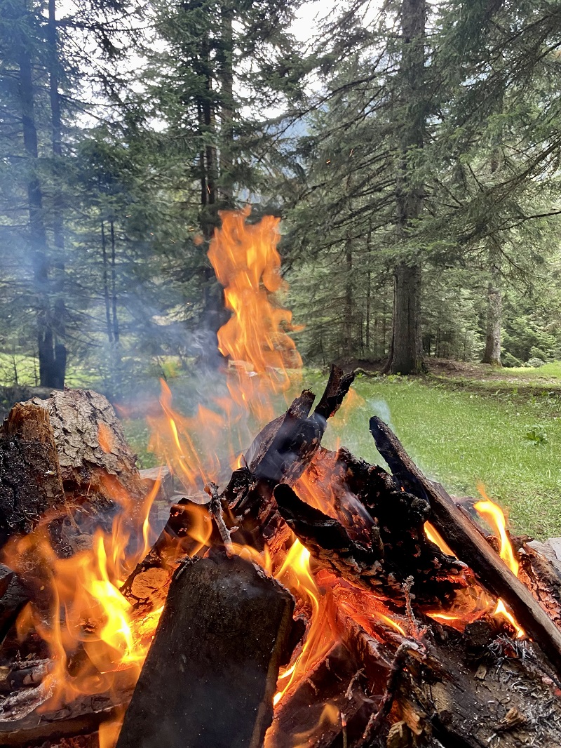 «Η φωτιά είναι κυρίως χαρά, είναι μαζώχτρα, μας τραβάει όλη την προσοχή, έχει αυτό το πριμιτίφ στοιχείο που έχουμε όλοι βαθιά μέσα μας», επισημαίνει ο ίδιος που έχει μεγαλώσει τιμώντας όλους τους τρόπους της. «Η δε διαδικασία είναι σίγουρα τελετουργία, από το άναμμα με τα μούσκλια που βγαίνουν στα έλατα και με δαδί, φυσικά από πεύκο και με πολύ ρετσίνι. Να τα ανάβεις και να μοσχοβολάει δάσος και να ακολουθεί η στιγμή που περιμένεις να “γίνει” η φωτιά, να πέσει η φλόγα, τα ξύλα να γίνουν κάρβουνα, να ασπρίσουν τα κάρβουνα και από κει και πέρα, μέχρι την ετοιμασία τού τι θα ψήσεις, όλα να παίρνουν τον δρόμο τους, απλά (αν/να) αφήνεσαι», καταλήγει.
