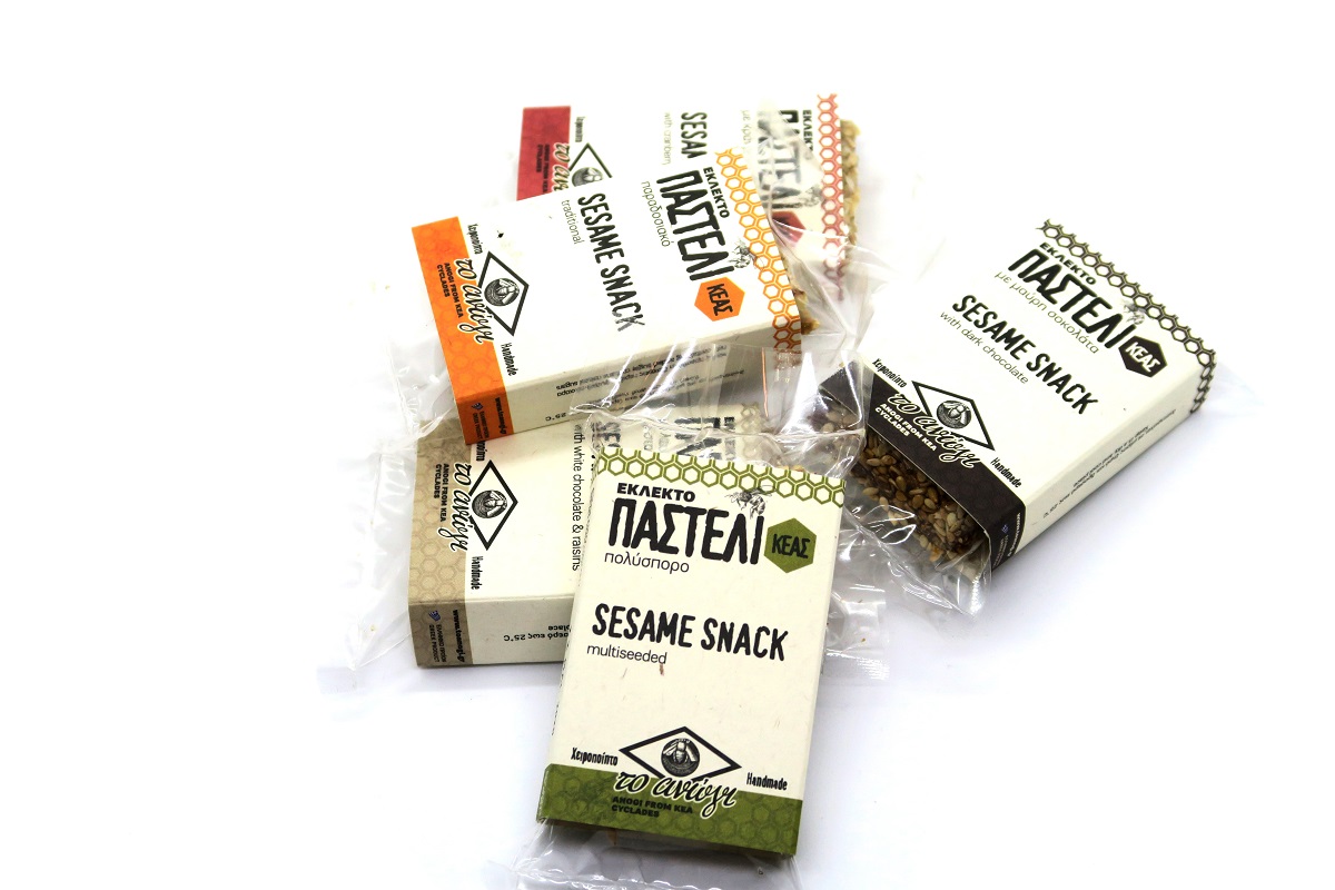 Στο e-shop του εργαστηρίου καθώς και σε επιλεγμένα καταστήματα στην Αθήνα (ντελικατέσεν, παντοπωλεία, ξηροκαρπάδικα και ορισμένα βιολογικά καταστήματα) και σε όλα τα σούπερ μάρκετ και τουριστικά μαγαζιά της Τζιας (όπως και στα καράβια που συνδέουν το νησί με την Αθήνα και με την Κύθνο) μπορεί κανείς να αναζητήσει 5 διαφορετικές προτάσεις σε παστέλια και περισσότερες από 15 σε μπάρες δημητριακών, βρώμης και πρωτεΐνης. «Οι δημοφιλέστερες μπάρες», μου λέει η Γαρυφαλιά, «είναι εκείνες που περιέχουν βούτυρα ξηρών καρπών και μαύρη σοκολάτα, ενώ η νούμερο ένα μπάρα μας σε πωλήσεις είναι αυτή με φουντουκοβούτυρο, βρώμη, μέλι, χοντροκομμένα και καβουρδισμένα φουντούκια και φυσικά, μαύρη σοκολάτα». Ωστόσο, υπάρχουν και τρεις προτάσεις σε βιολογικές μπάρες: μία, με βούτυρο κάσιους και μπανάνα, μια άλλη, με ταχίνι ολικής, σύκα, καρύδια, σταφίδες και κακάο και η τρίτη, με φυστικοβούτυρο και ξηρούς καρπούς.