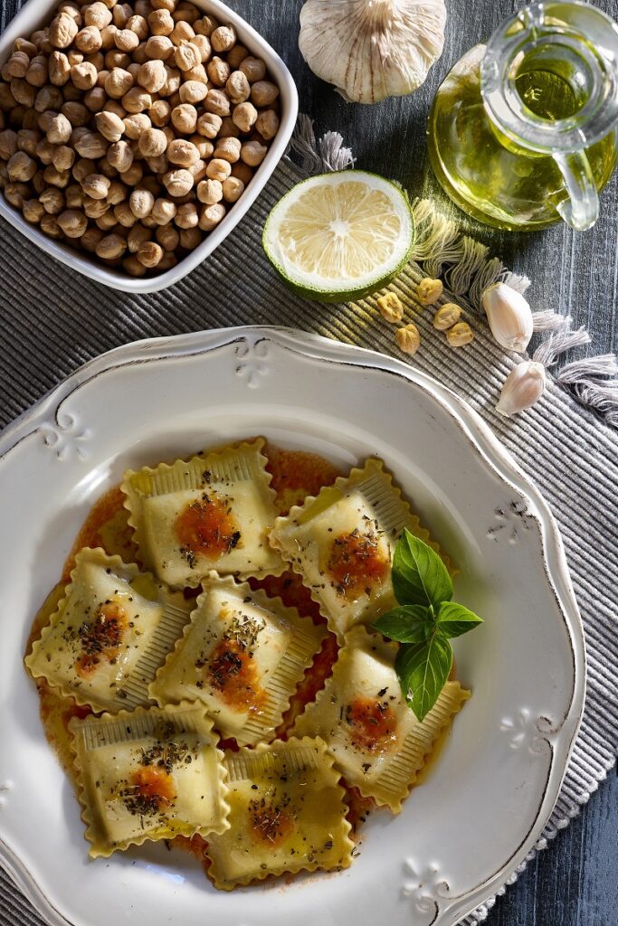 Πιο συγκεκριμένα, στα ζυμαρικά με άρωμα Κρήτης θα συναντήσουμε τορτελίνια γεμιστά με ανθότυρο, ραβιόλες με γέμιση μυζήθρα-δυόσμο ή με τυριά και χόρτα Κρήτης, με γέμιση απάκι ή με φρέσκα μανιτάρια και αρισμαρί (δεντρολίβανο), αλλά και τα σπιτικό τους μακαρόνι.