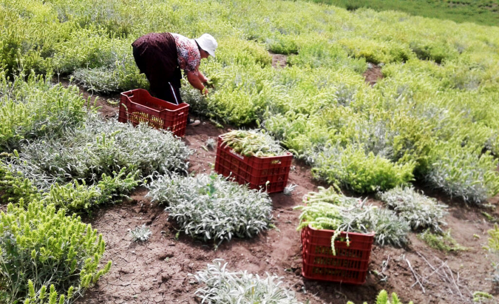 «Εδώ» μου εξηγεί ο Βασίλης «Όλα γίνονται με το χέρι. Από την σπορά και το ξεχορτάριασμα, μέχρι τη συγκομιδή, το στέγνωμα στη δροσιά της τσιμεντένιας αποθήκης (βοηθά στο να μην εξατμιστούν τα αιθέρια έλαια των φυτών) αλλά και τη συσκευασία, κομμάτι στο οποίο βοηθούν οι αδερφές και η μητέρα μου».